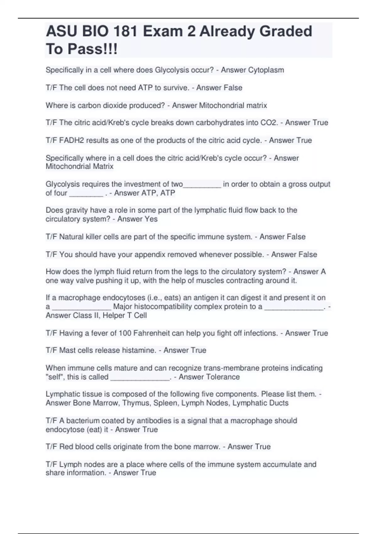 ASU BIO 181 Exam 2 Already Graded To Pass!!!