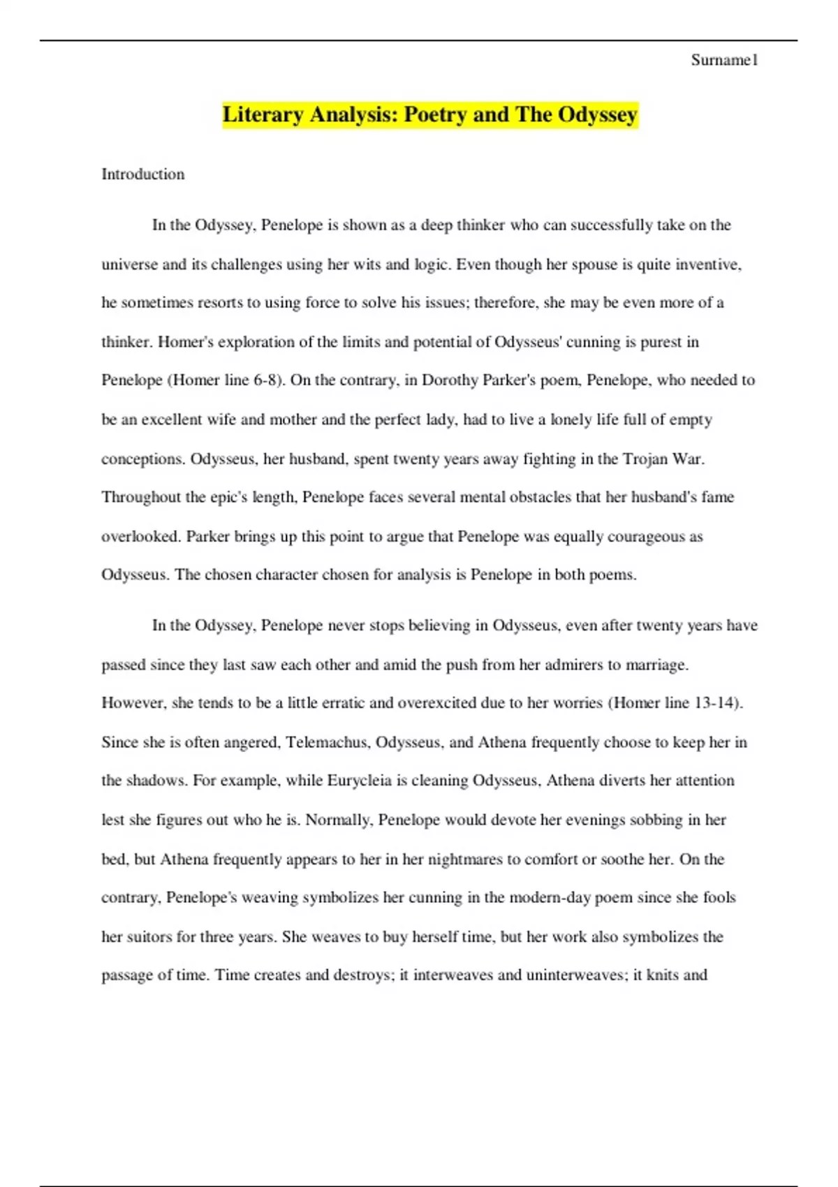 In the Odyssey, Penelope is shown as a deep thinker who can successfully take on the universe and its challenges using her wits and logic. Even though her spouse is quite inventive, he sometimes resorts to using force to solve his issues; therefore, she may be even more of a thinker.