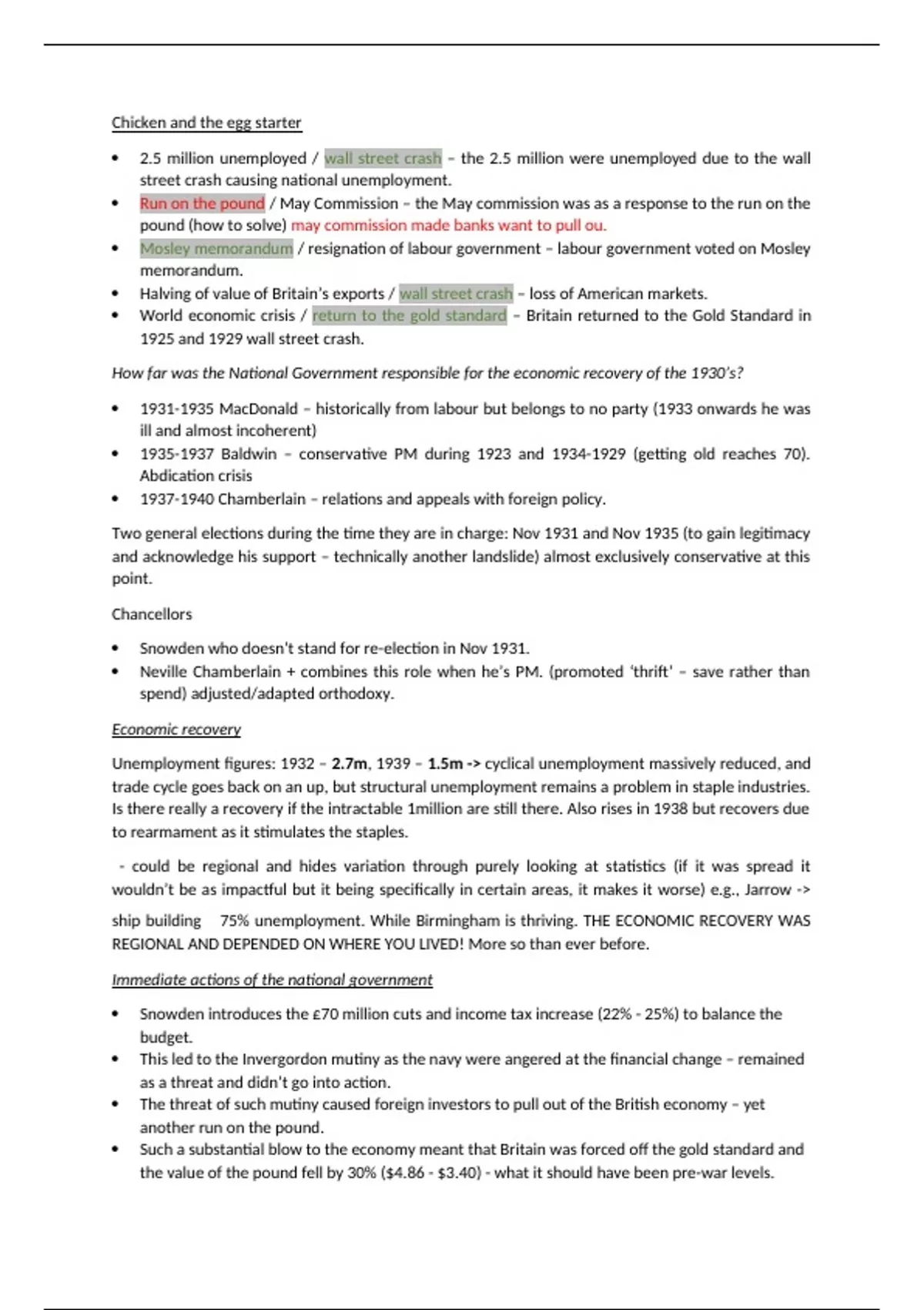 How far was the National Government responsible for the economic recovery of the 1930’s?