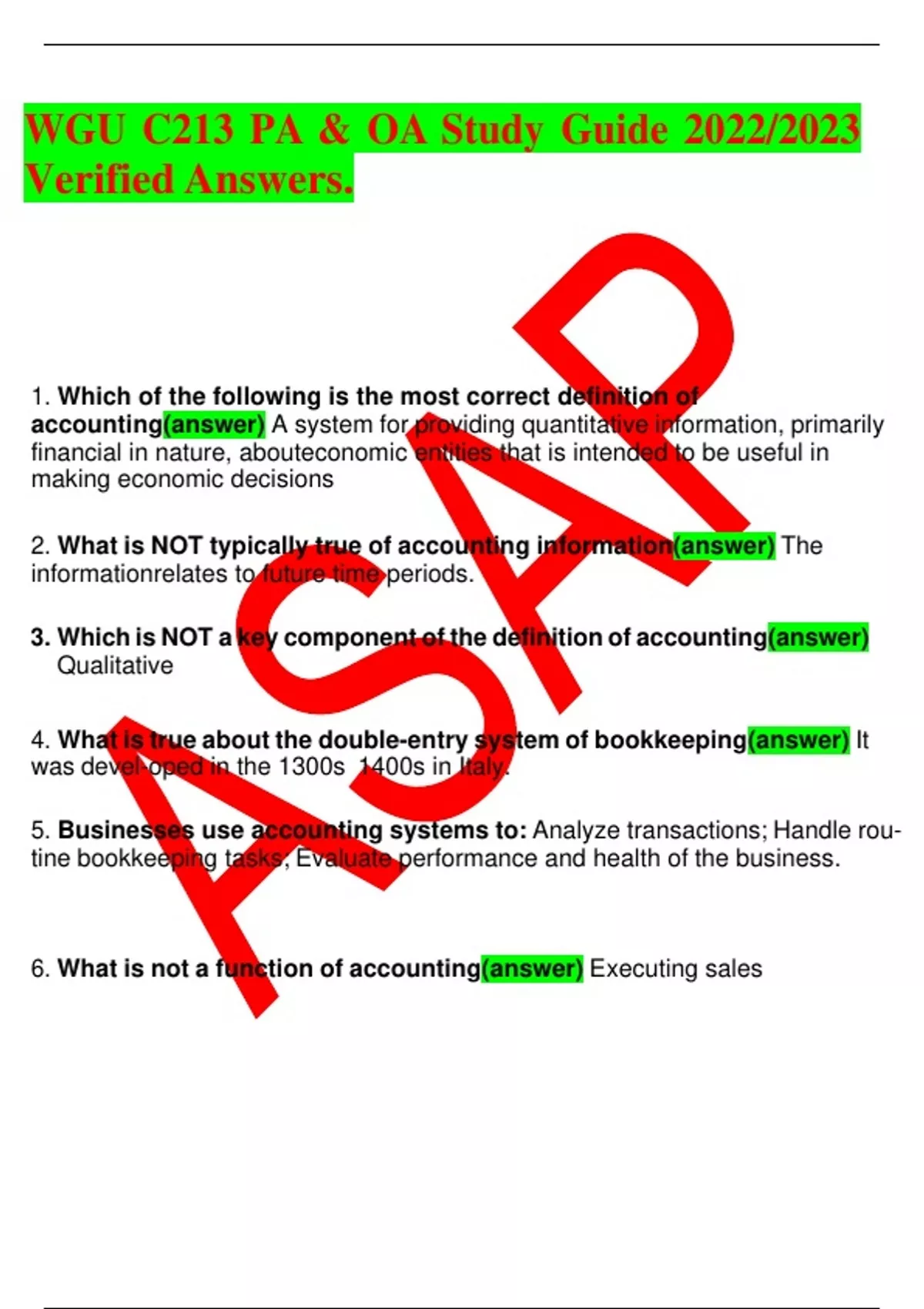WGU C213 PA & OA Study Guide Verified Answers.2024