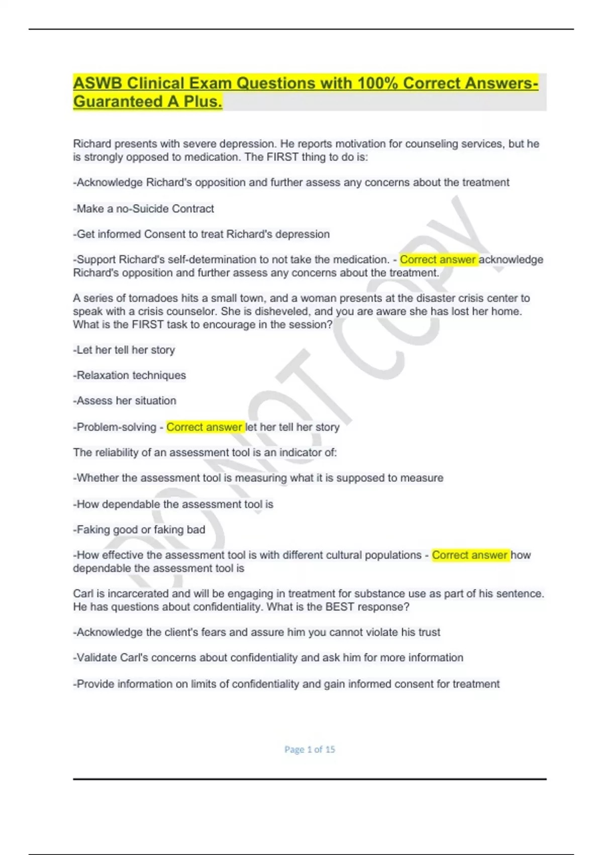 ASWB Clinical Exam Questions with 100% Correct Answers-Guaranteed A Plus..ASWB Clinical Exam Questions with 100% Correct Answers-Guaranteed A Plus..