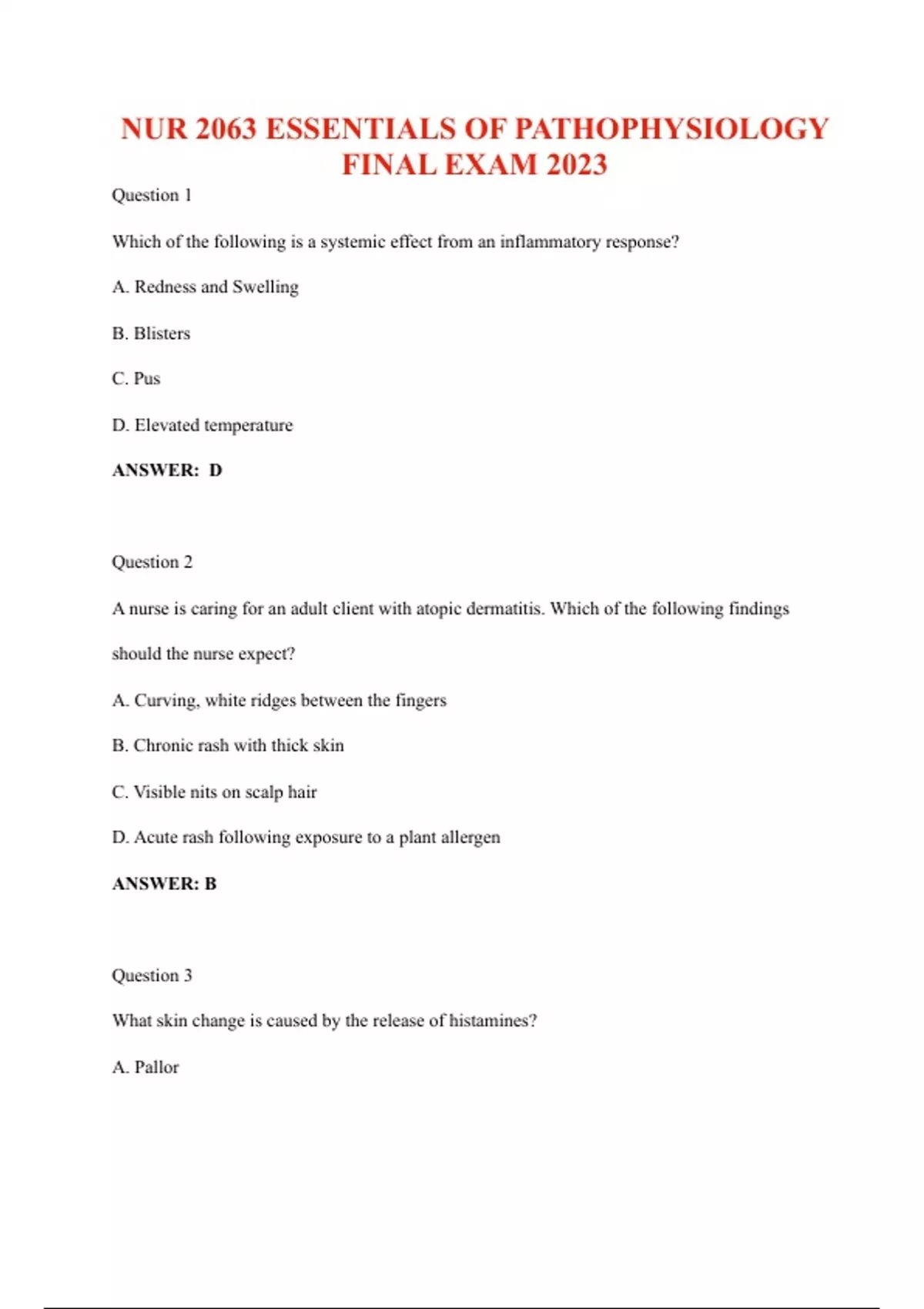 NUR 2063 ESSENTIALS OF PATHOPHYSIOLOGY FINAL EXAM 2023