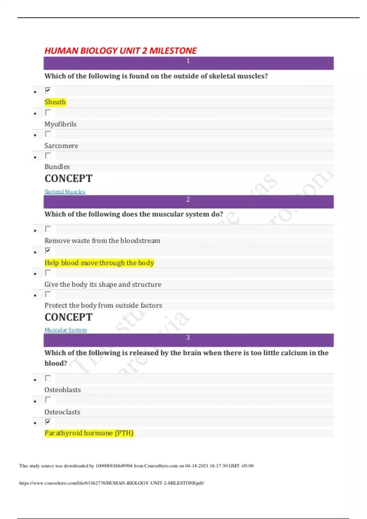HUMAN BIOLOGY UNIT 2 MILESTONE GUARANTEED PASS. Already Graded A