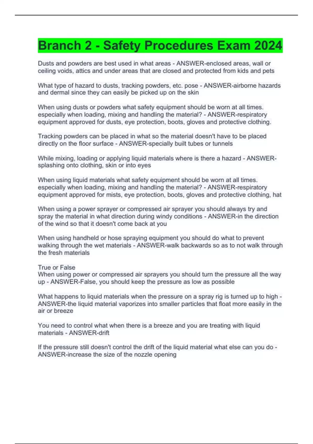 Branch 2 - Safety Procedures Exam 2024