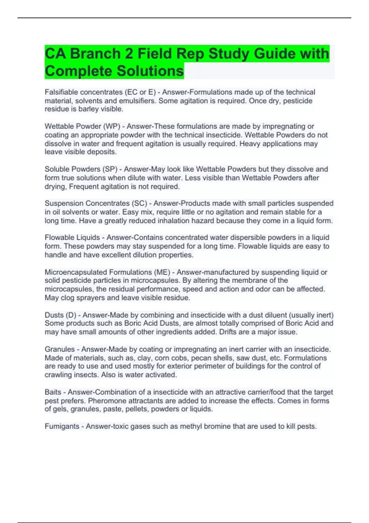CA Branch 2 Field Rep Study Guide with Complete Solutions