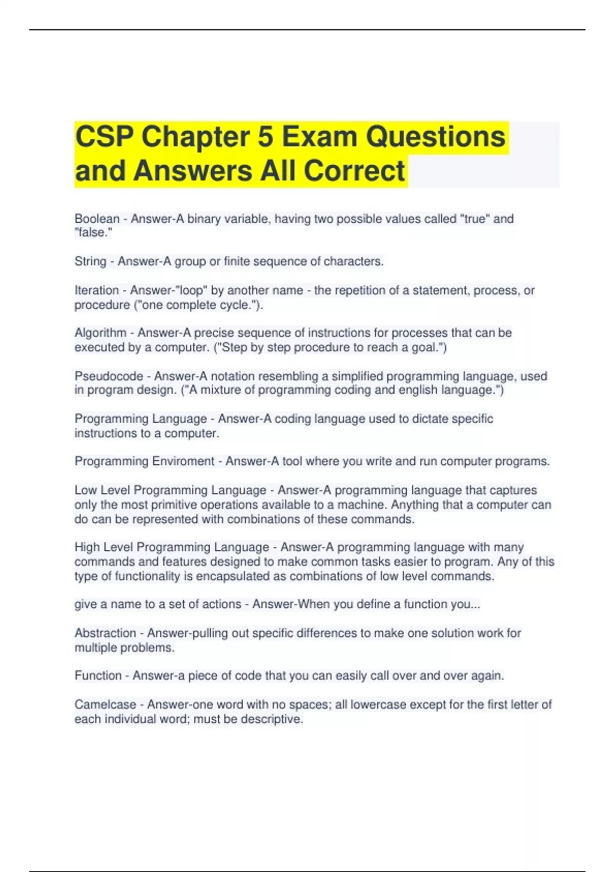 CSP Chapter 5 Exam Questions and Answers All Correct