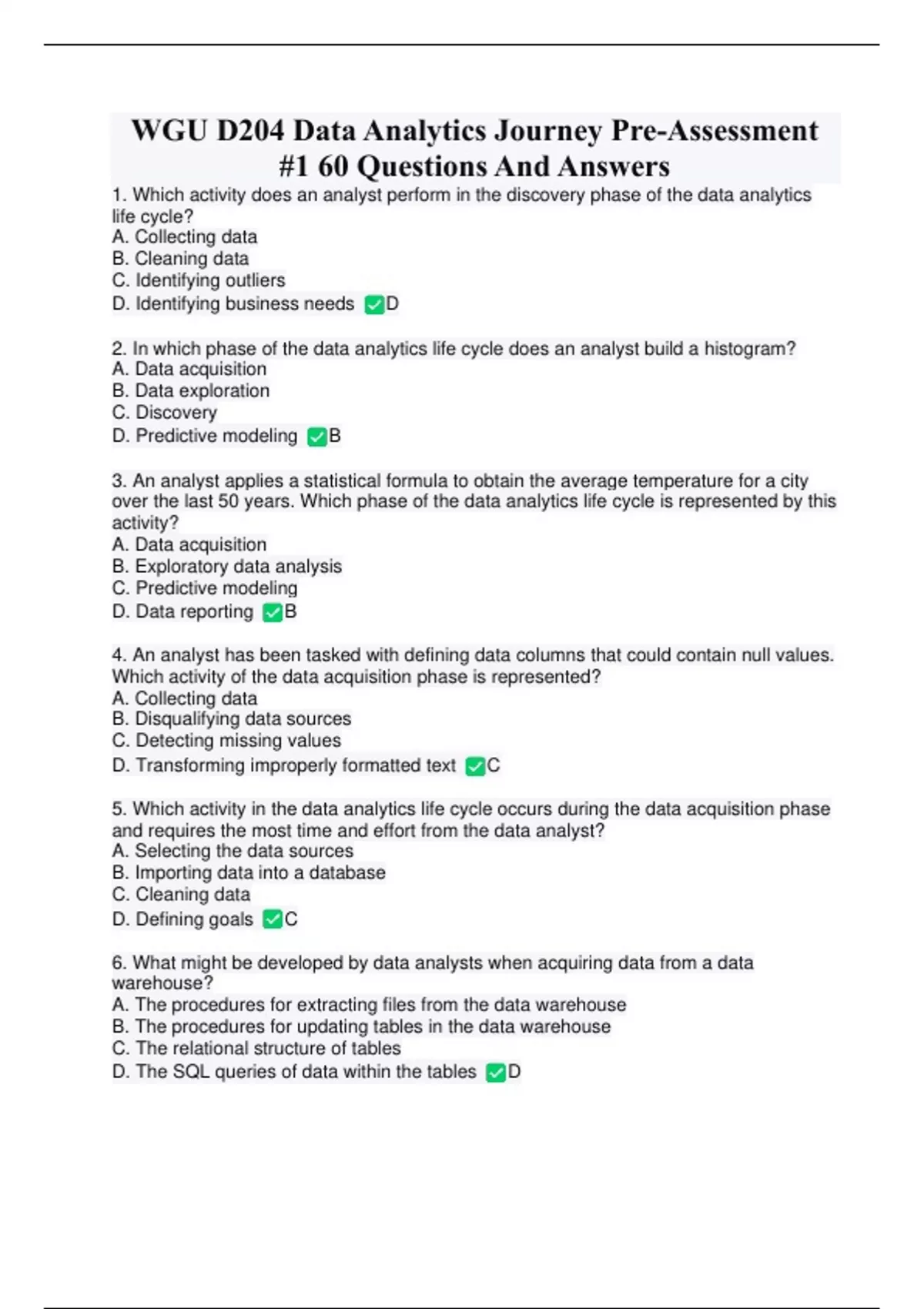 WGU D204 Data Analytics Journey Pre-Assessment #1 60 Questions And Answers WGU D204 Data Analytics Journey Pre-Assessment #1 60 Questions And Answers