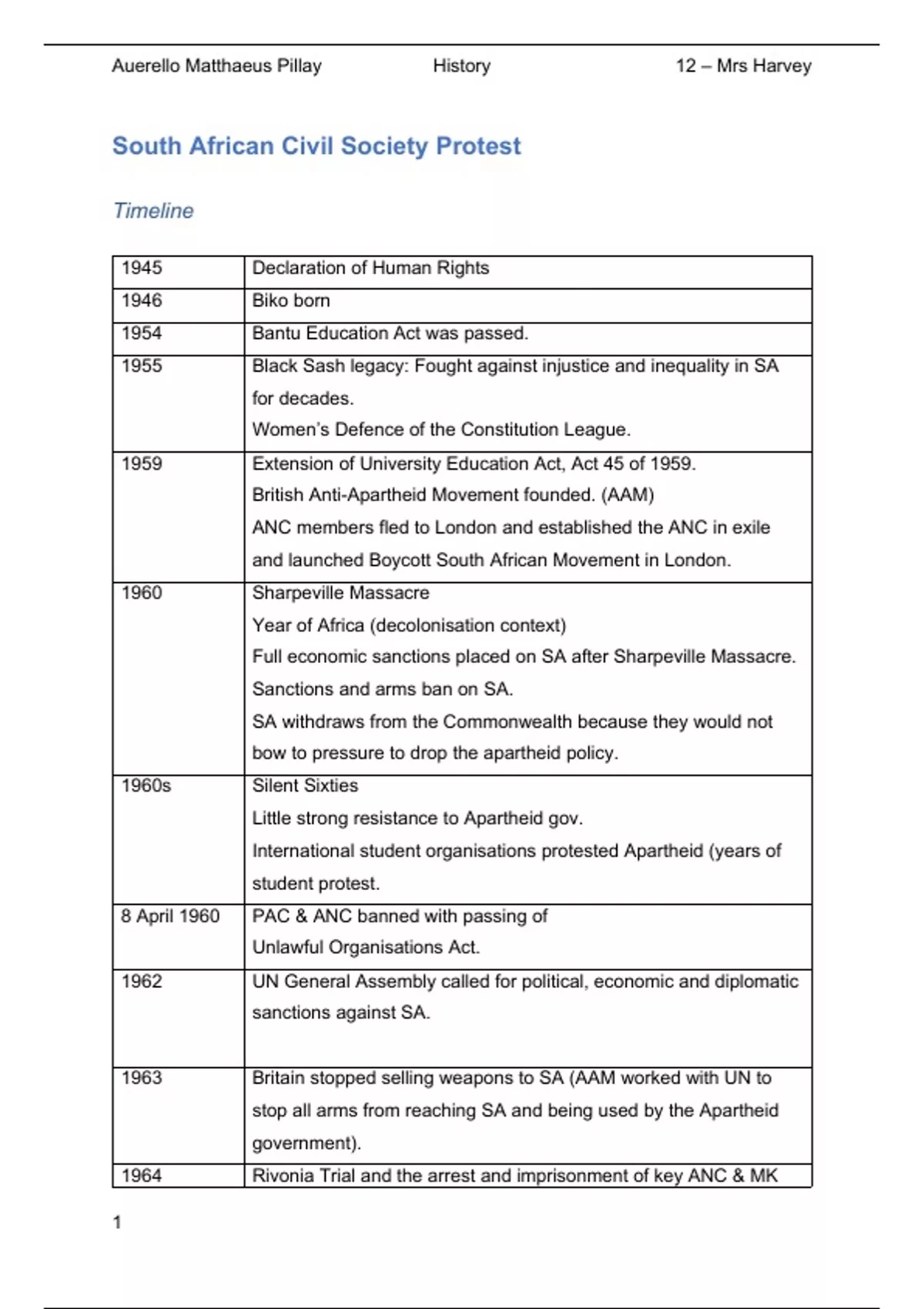 , Auerello Matthaeus Pillay History 12 – Mrs Harvey