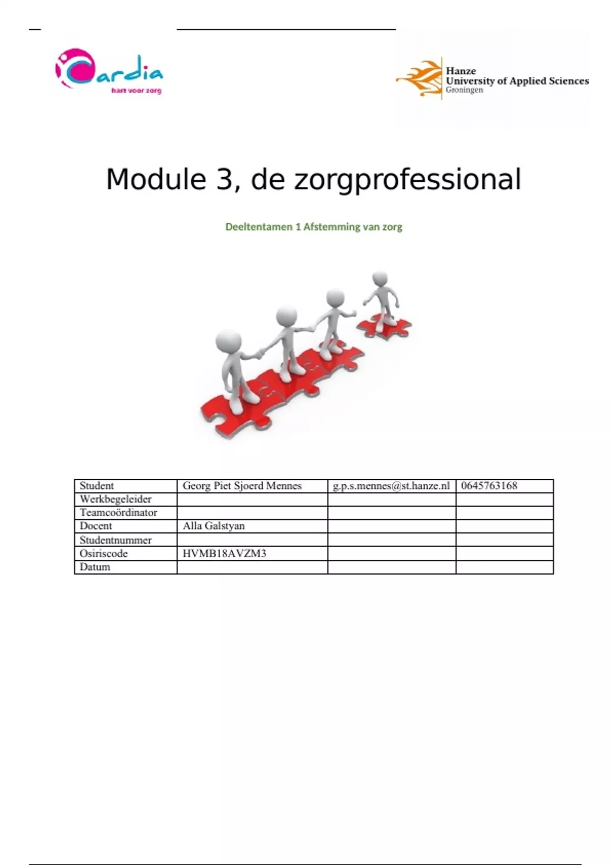 Deeltentamen 1 Afstemming van zorg
