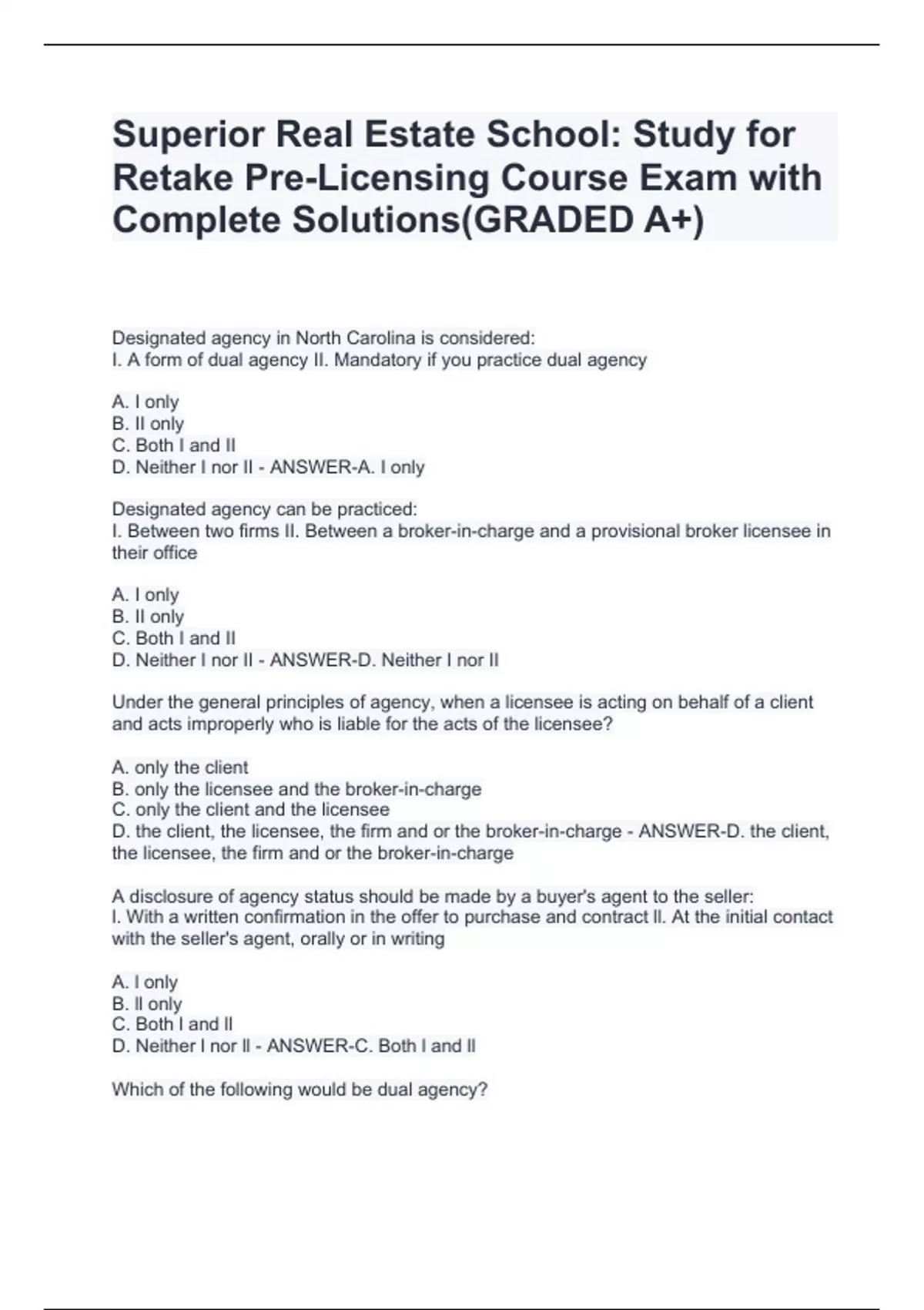 Superior Real Estate School: Study for Retake Pre-Licensing Course Exam with Complete Solutions(GRADED A+)