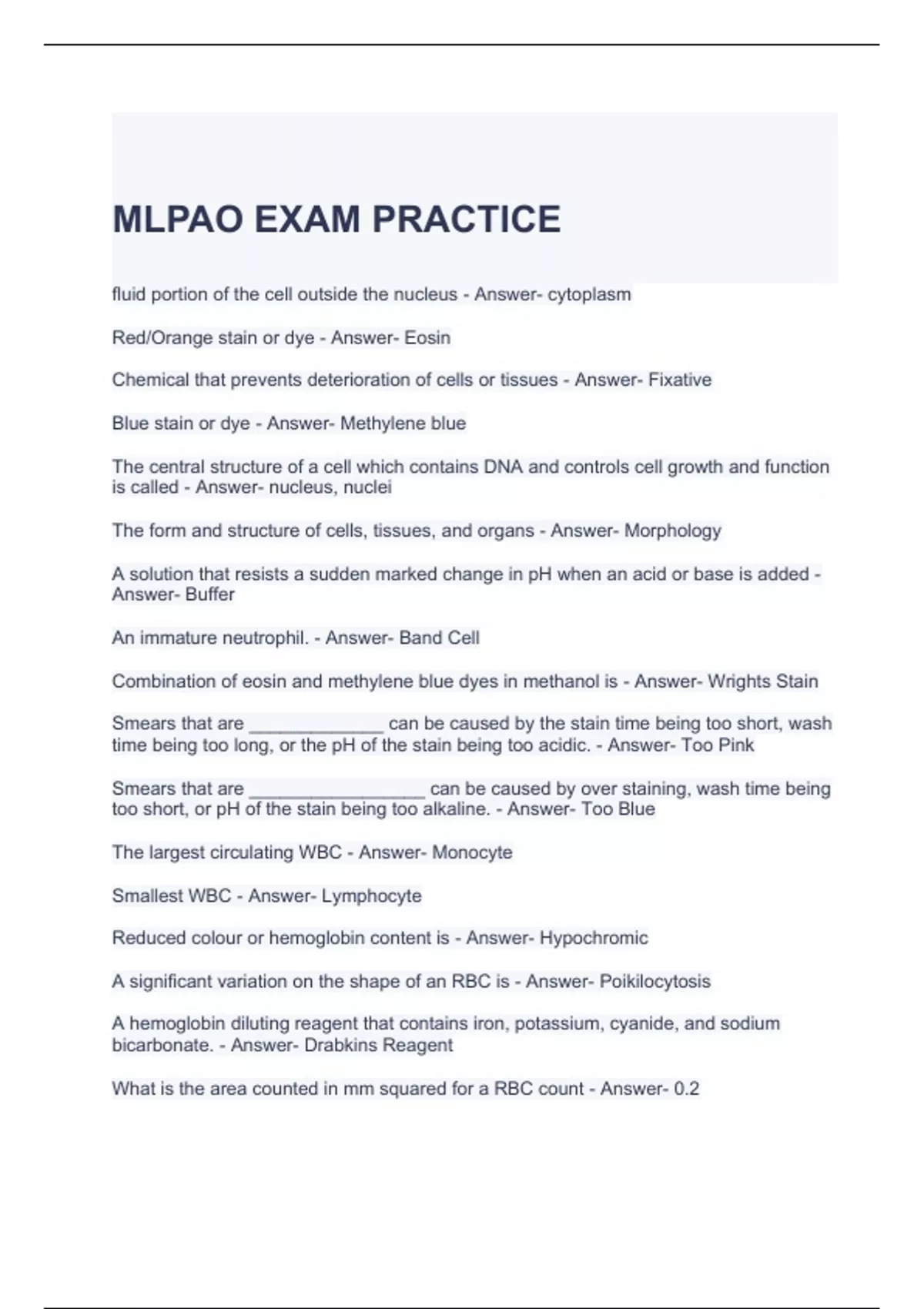 MLPAO EXAM PRACTICE QUESTIONS AND ANSWERS