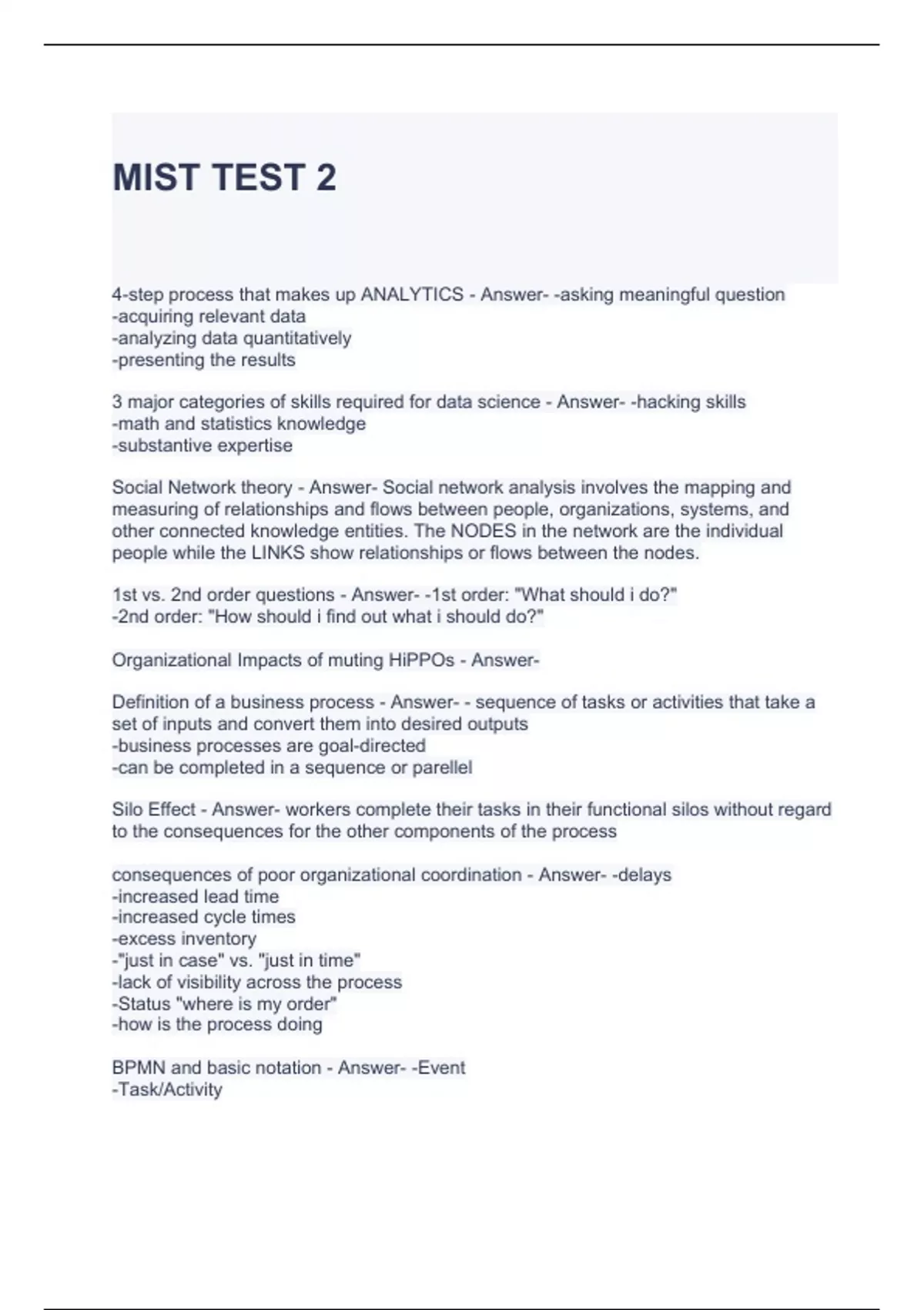 MIST TEST 2 QUESTIONS AND ANSWERS 2024