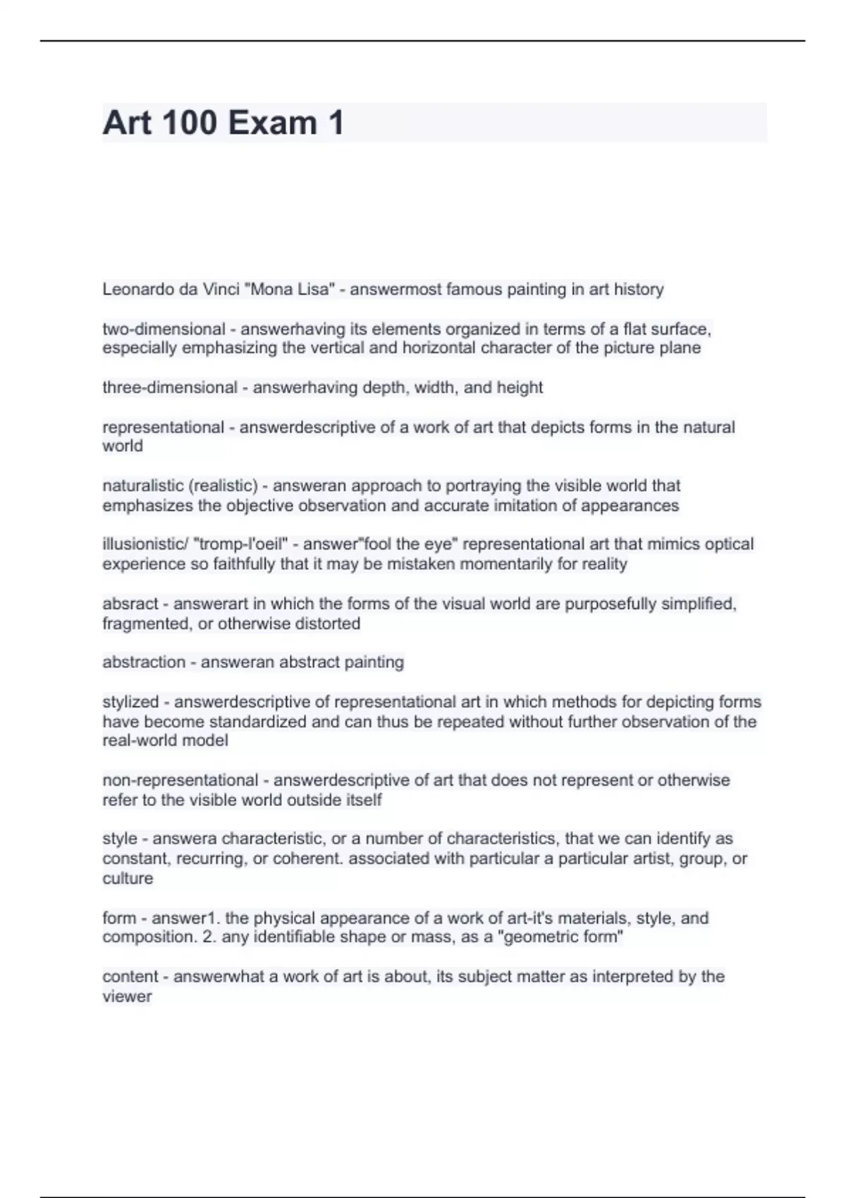 Art 100 Exam 1 Questions and Answers Fully solved