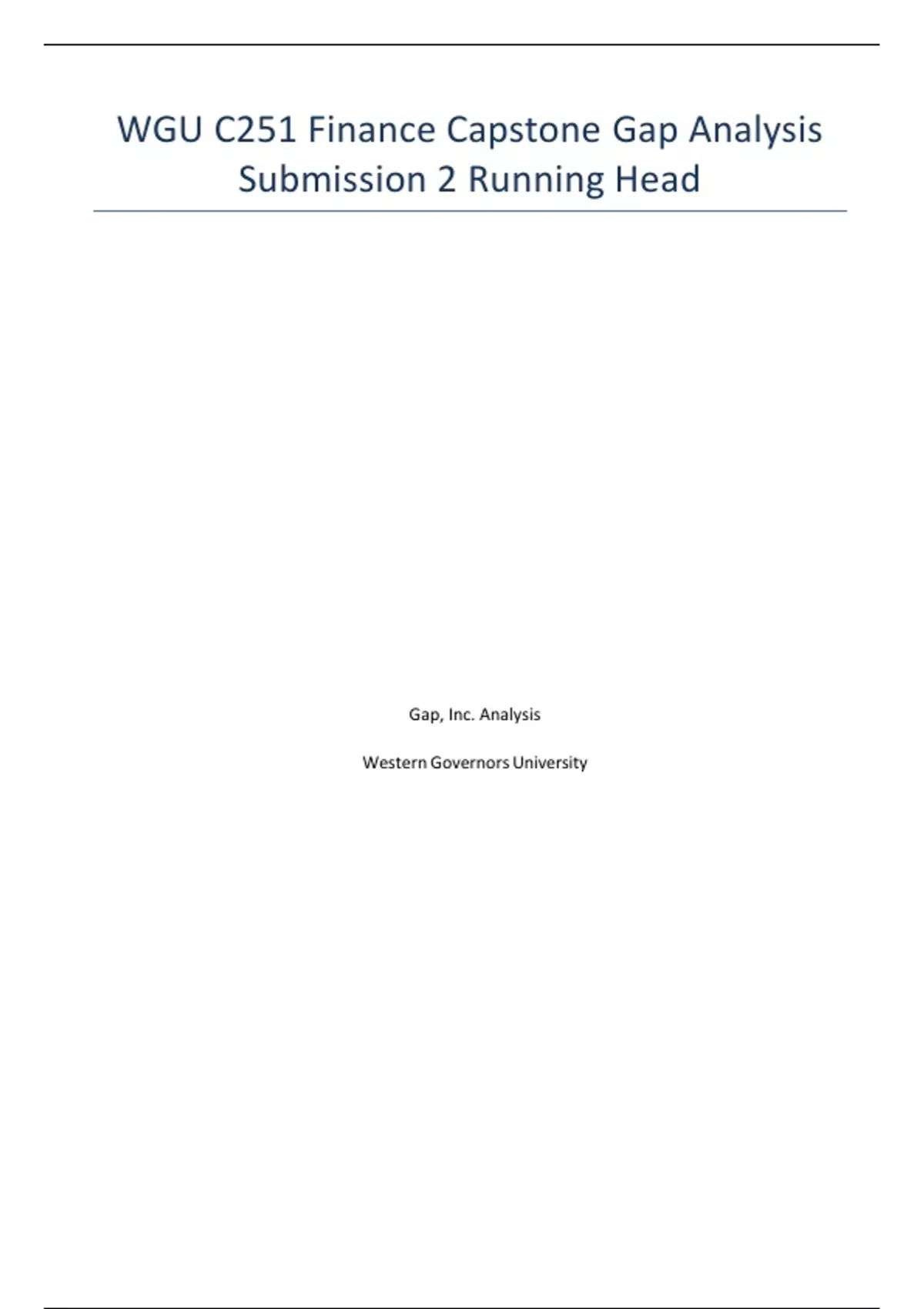 WGU C251 Finance Capstone Gap Analysis Submission 2 Running Head