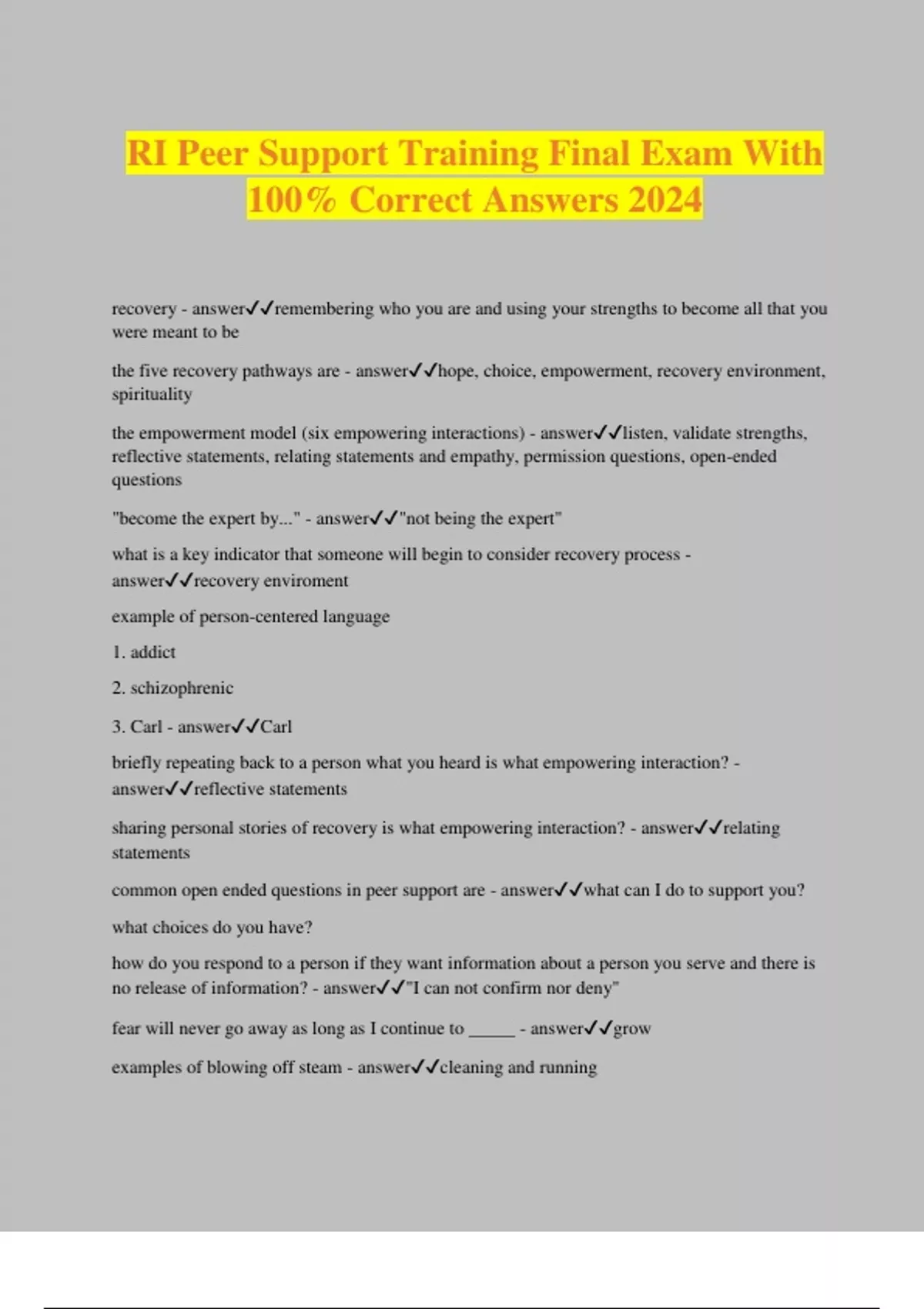 RI Peer Support Training Final Exam With 100% Correct Answers 2024