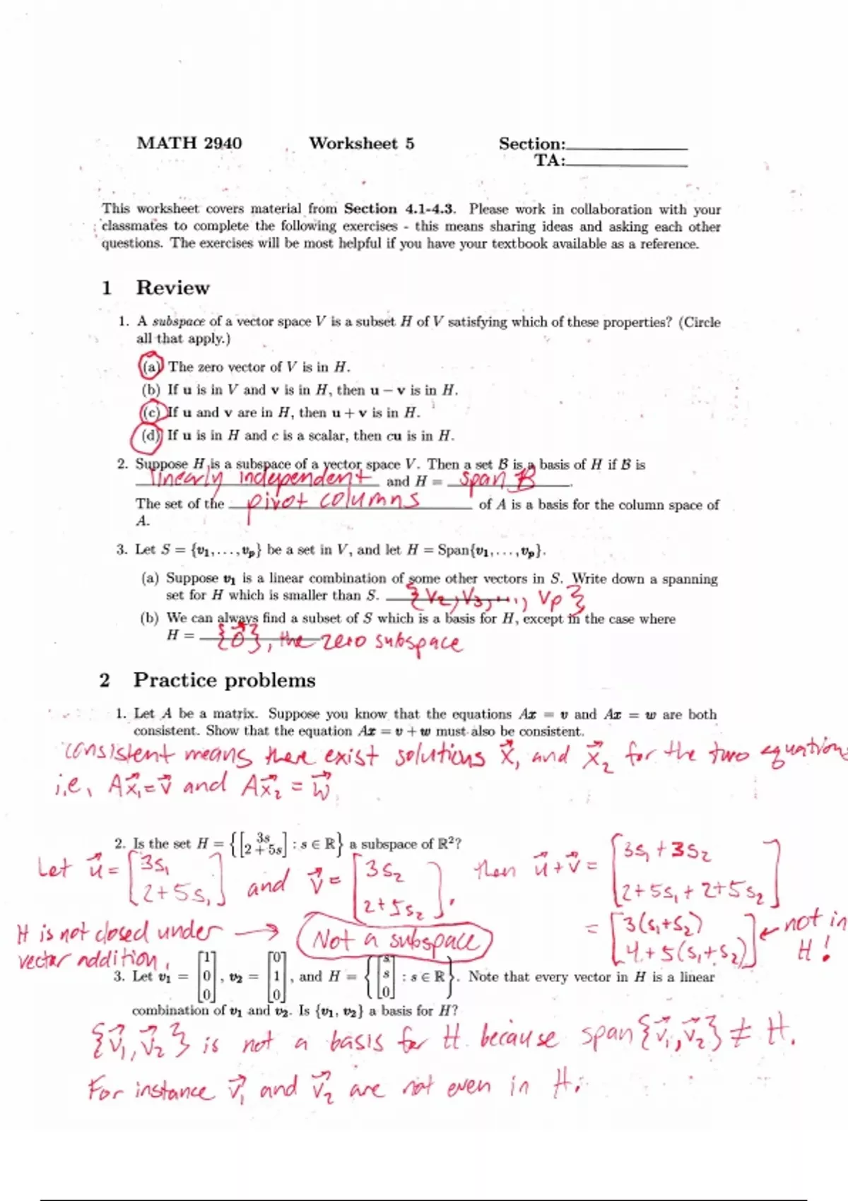 Linear Algebra Homework Solutions