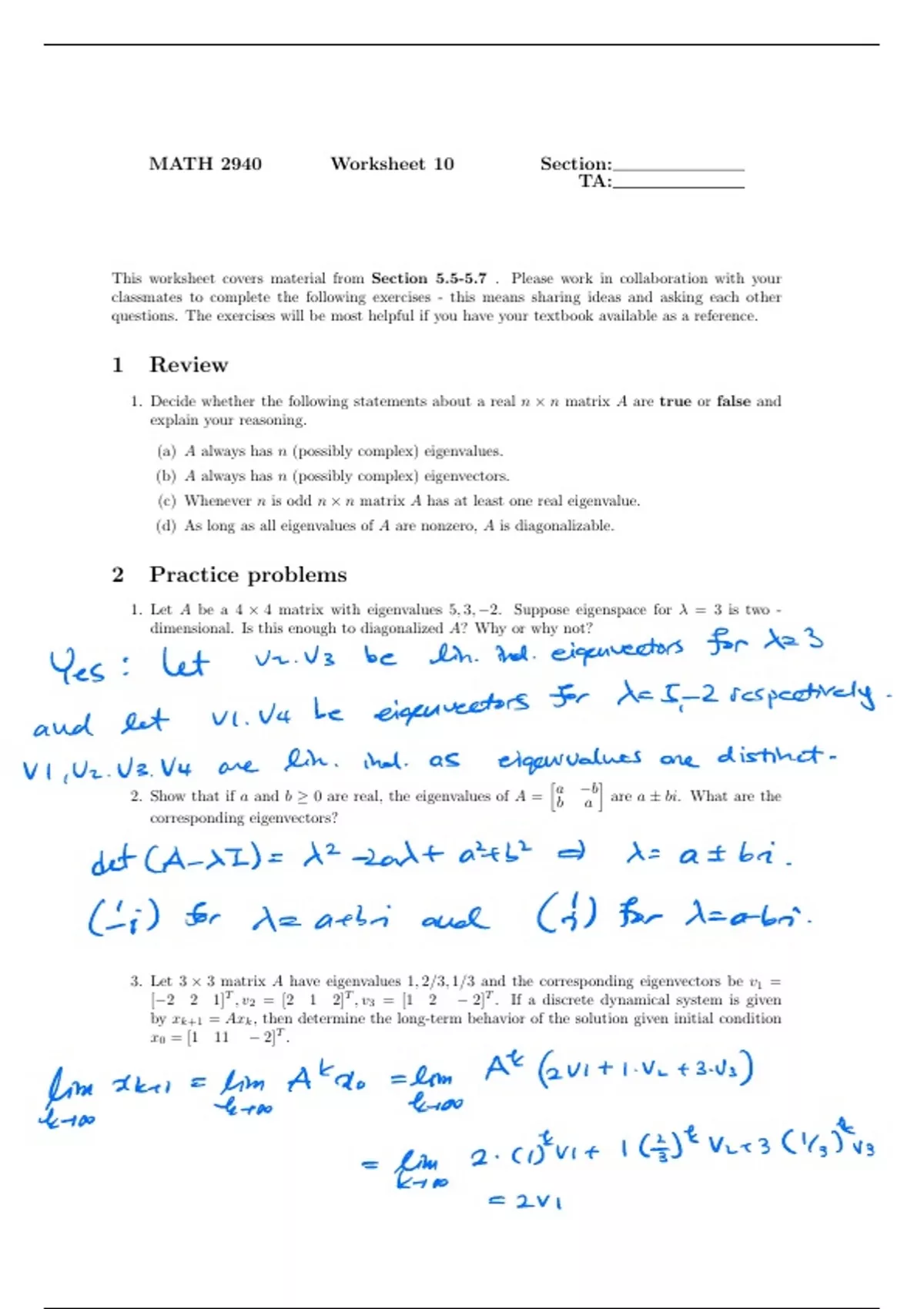 Linear Algebra Homework Solutions