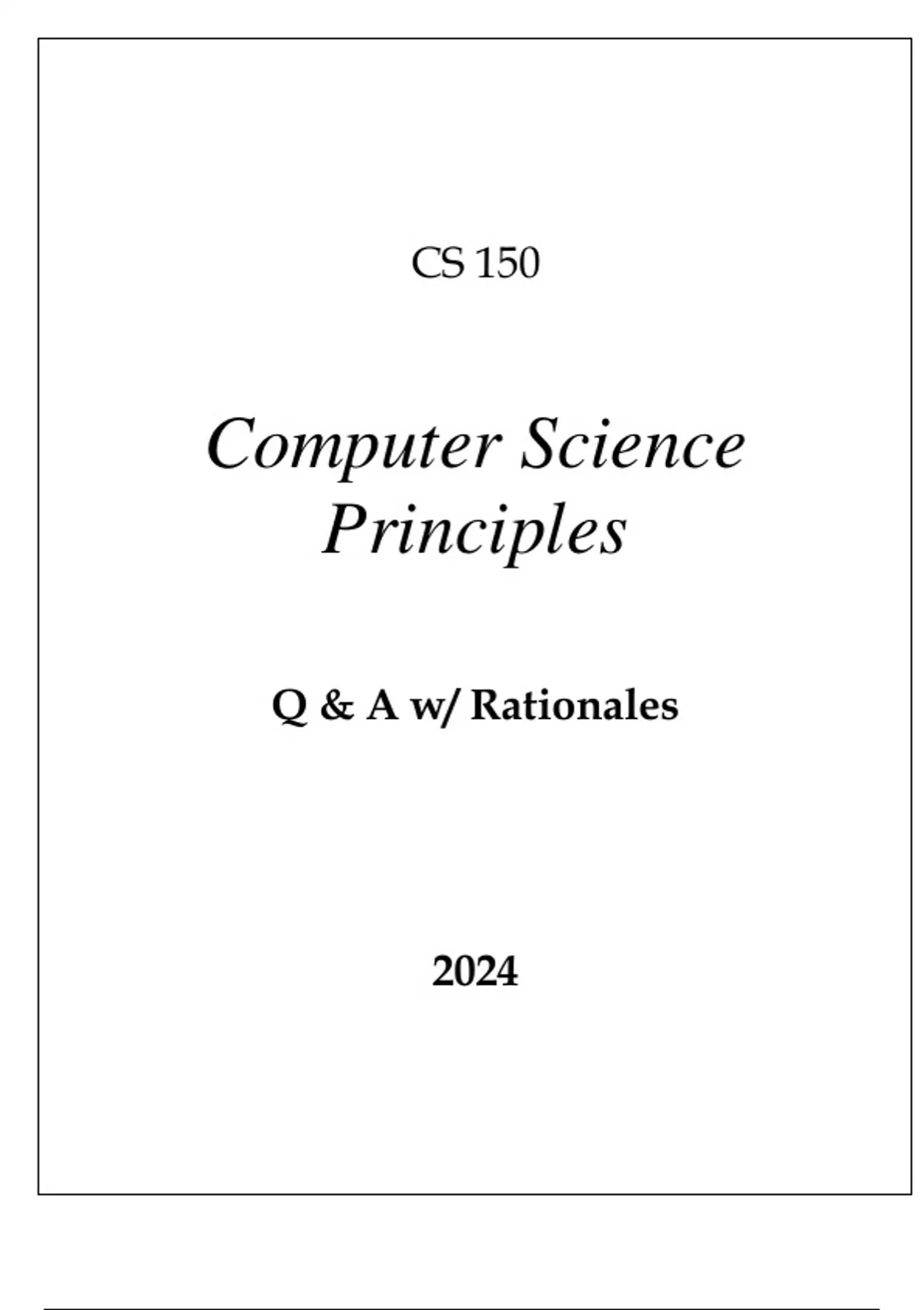 CS 150 COMPUTER SCIENCE PRINCIPLES EXAM Q & A WITH RATIONALES 2024