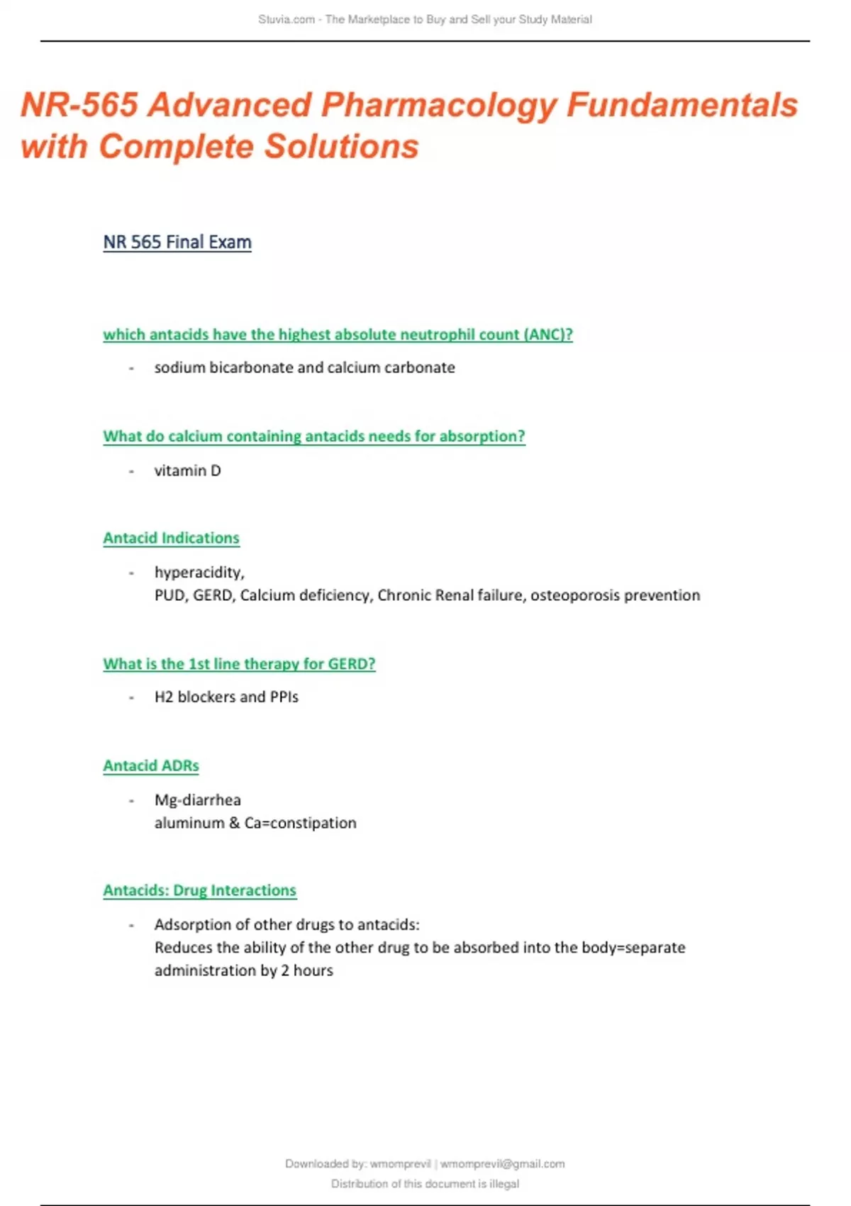 NR565/ NR 565 Advanced Pharmacology Fundamentals Exam with Complete Solutions