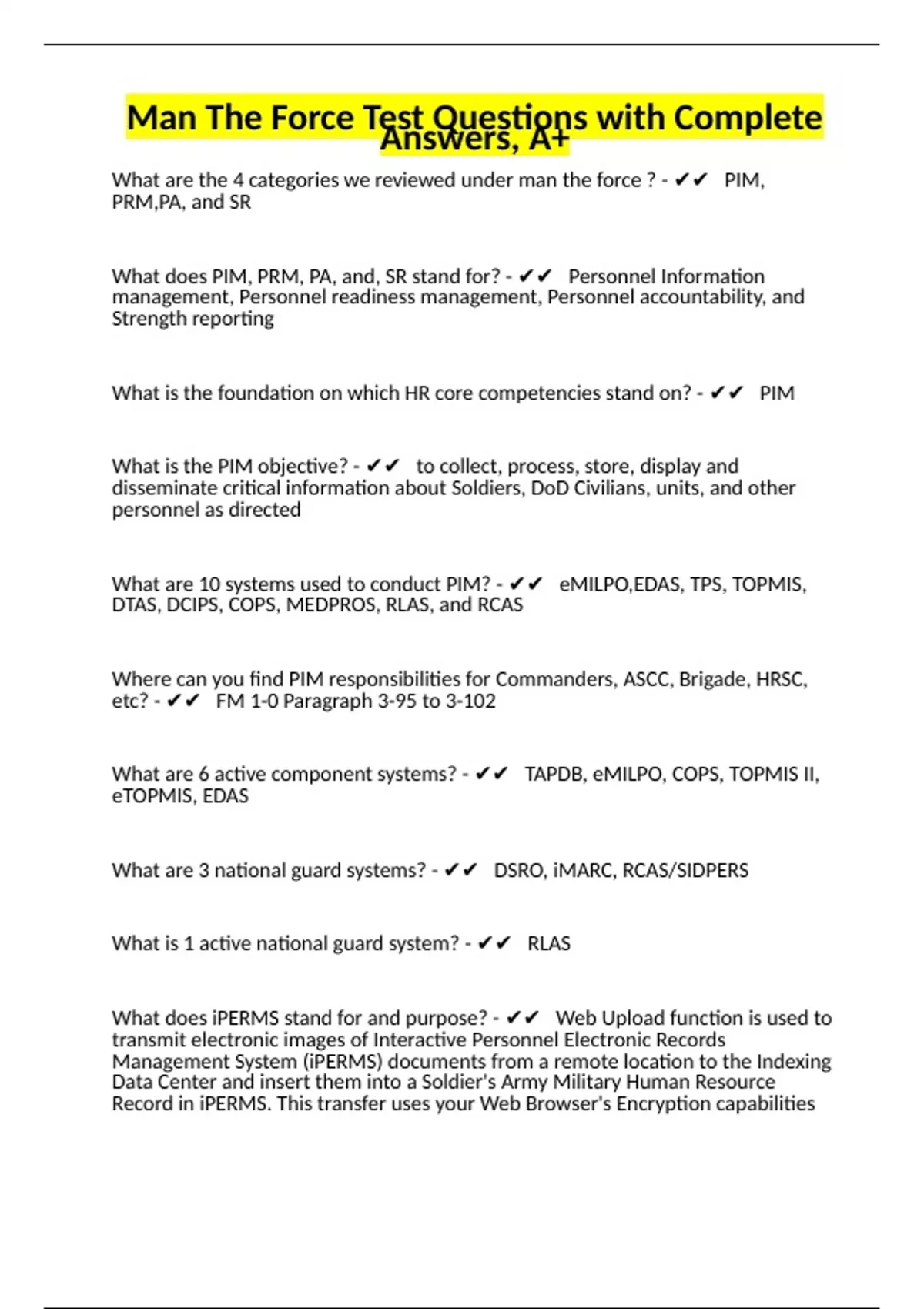 Man The Force Test Questions with Complete Answers, A+