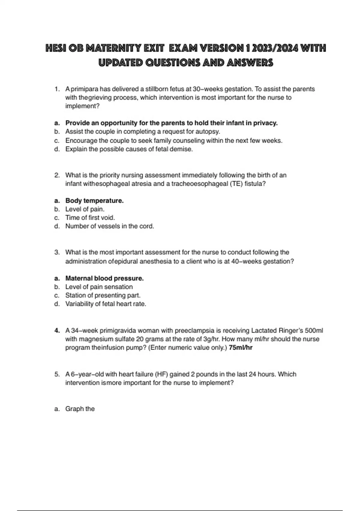 HESI OB MATERNITY EXIT EXAM VERSION WITH UPDATED QUESTIONS AND ANSWERS