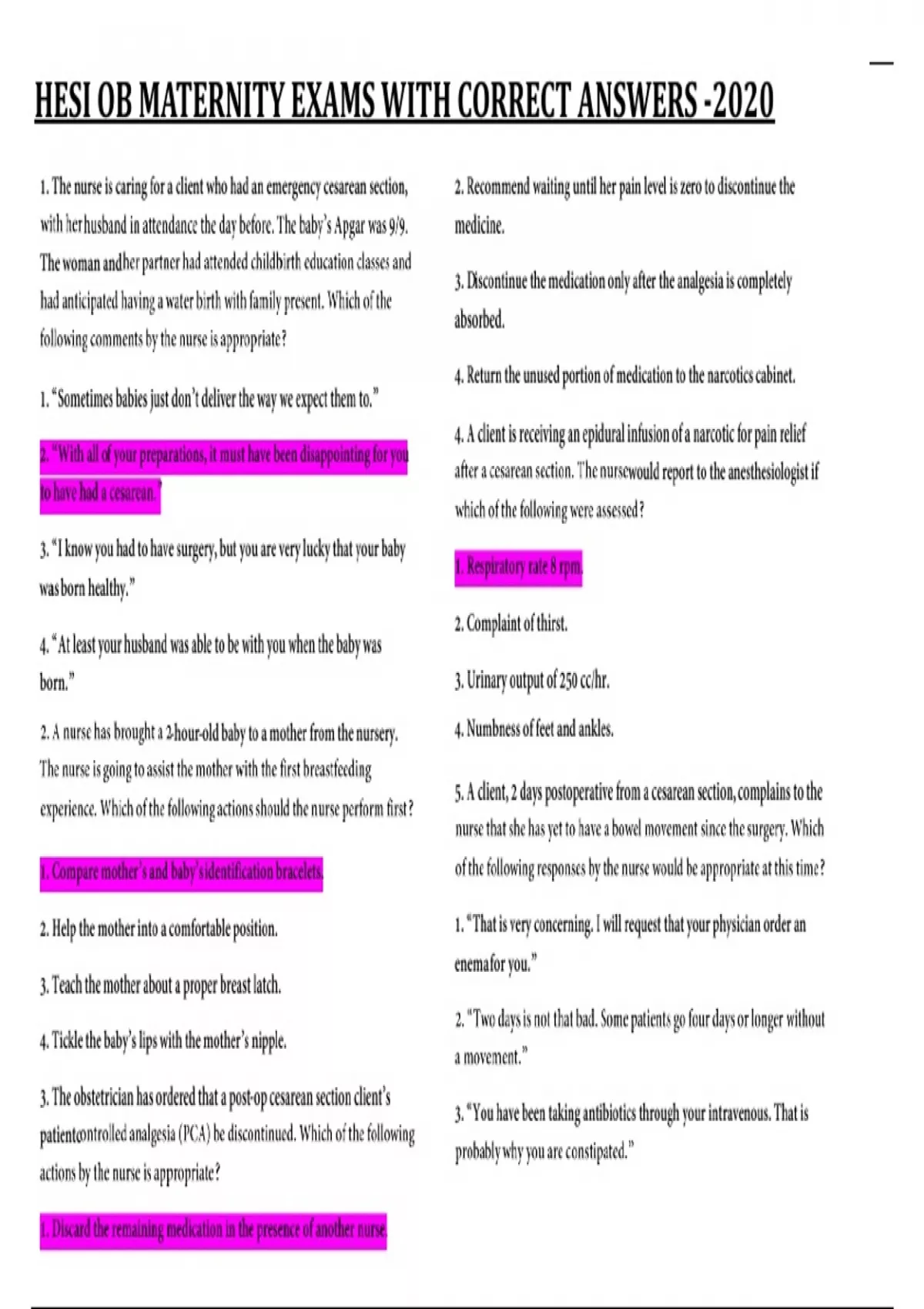 HESI OB MATERNITY EXAMS WITH CORRECT ANSWERS -2020