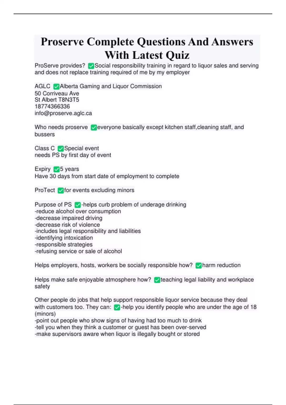 Proserve Complete Questions And Answers With Latest Quiz Proserve Complete Questions And Answers With Latest Quiz
