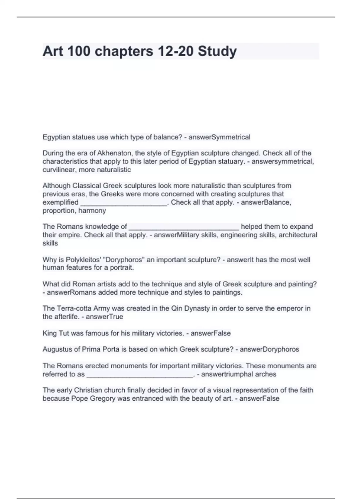 Art 100 chapters 12-20 Study Questions and Answers 100% correct