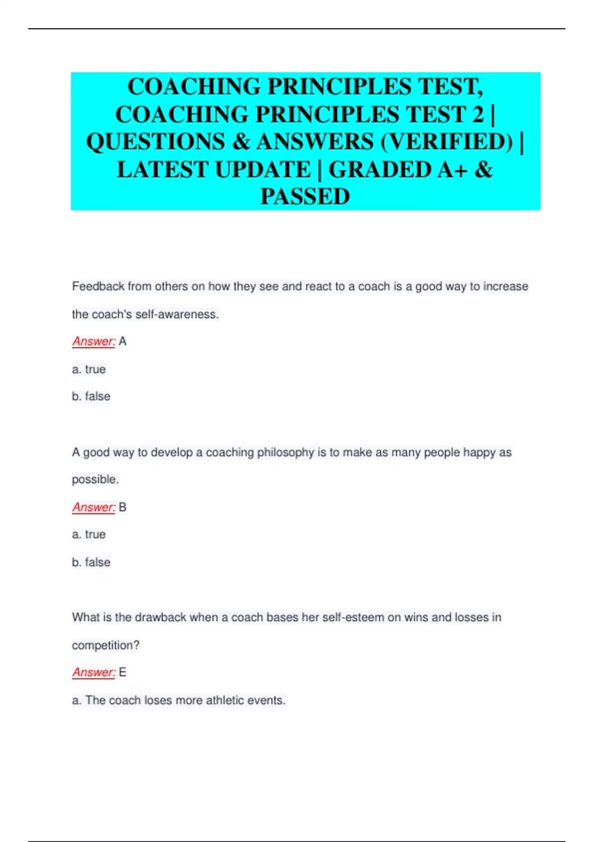 COACHING PRINCIPLES TEST, COACHING PRINCIPLES TEST 2 | QUESTIONS & ANSWERS (VERIFIED) | LATEST UPDATE | GRADED A+ & PASSED