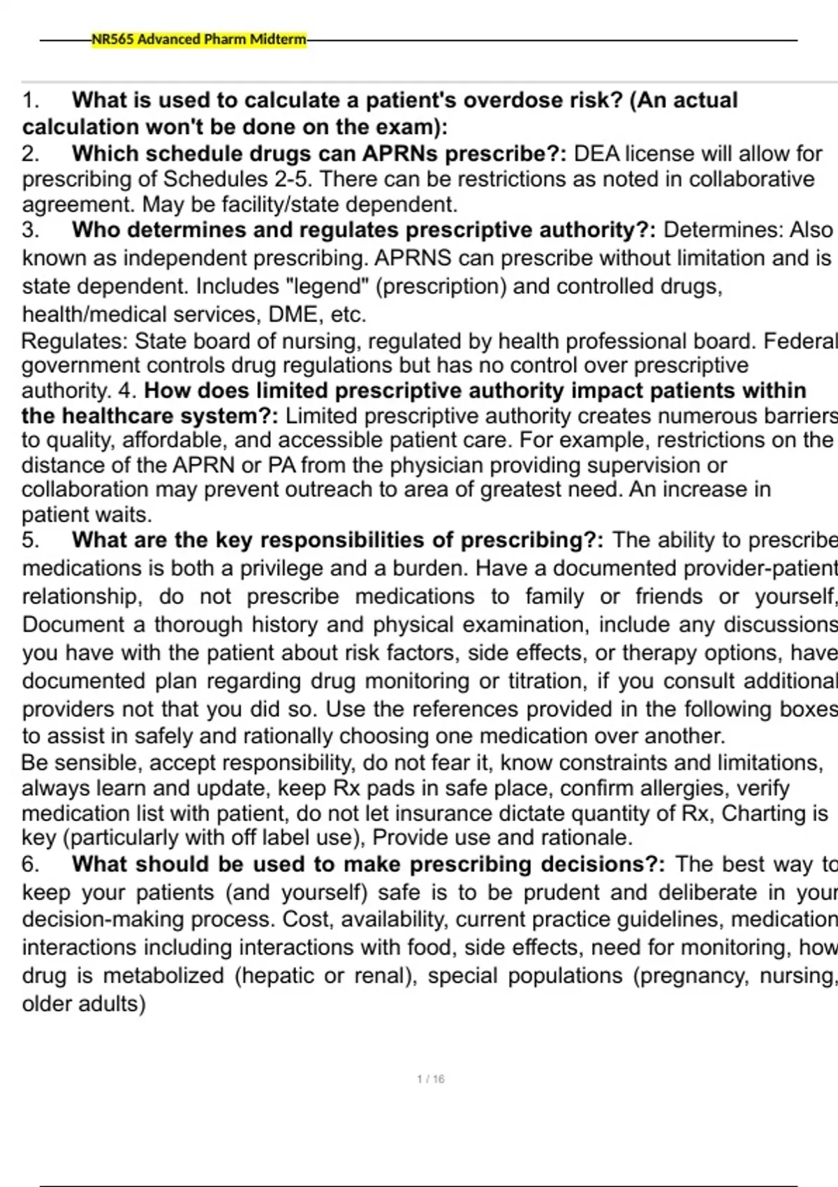 , NR565 Advanced Pharm Midterm