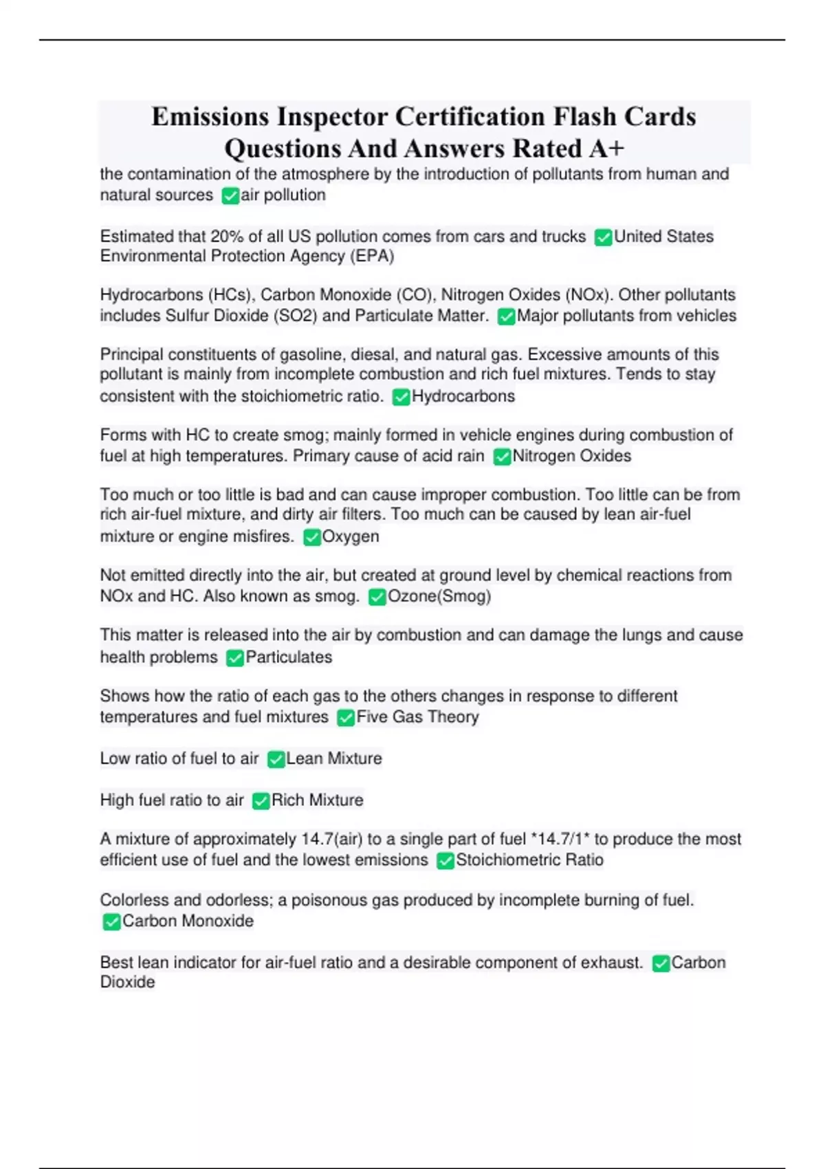 Emissions Inspector Certification Flash Cards Questions And Answers Rated A+ Emissions Inspector Certification Flash Cards Questions And Answers Rated A+