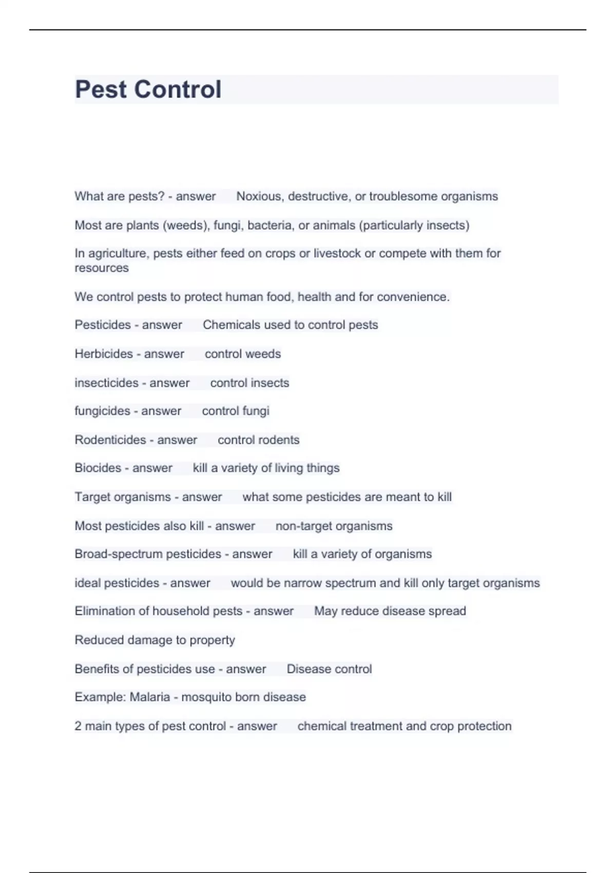 Pest Control Questions and Answers Graded A