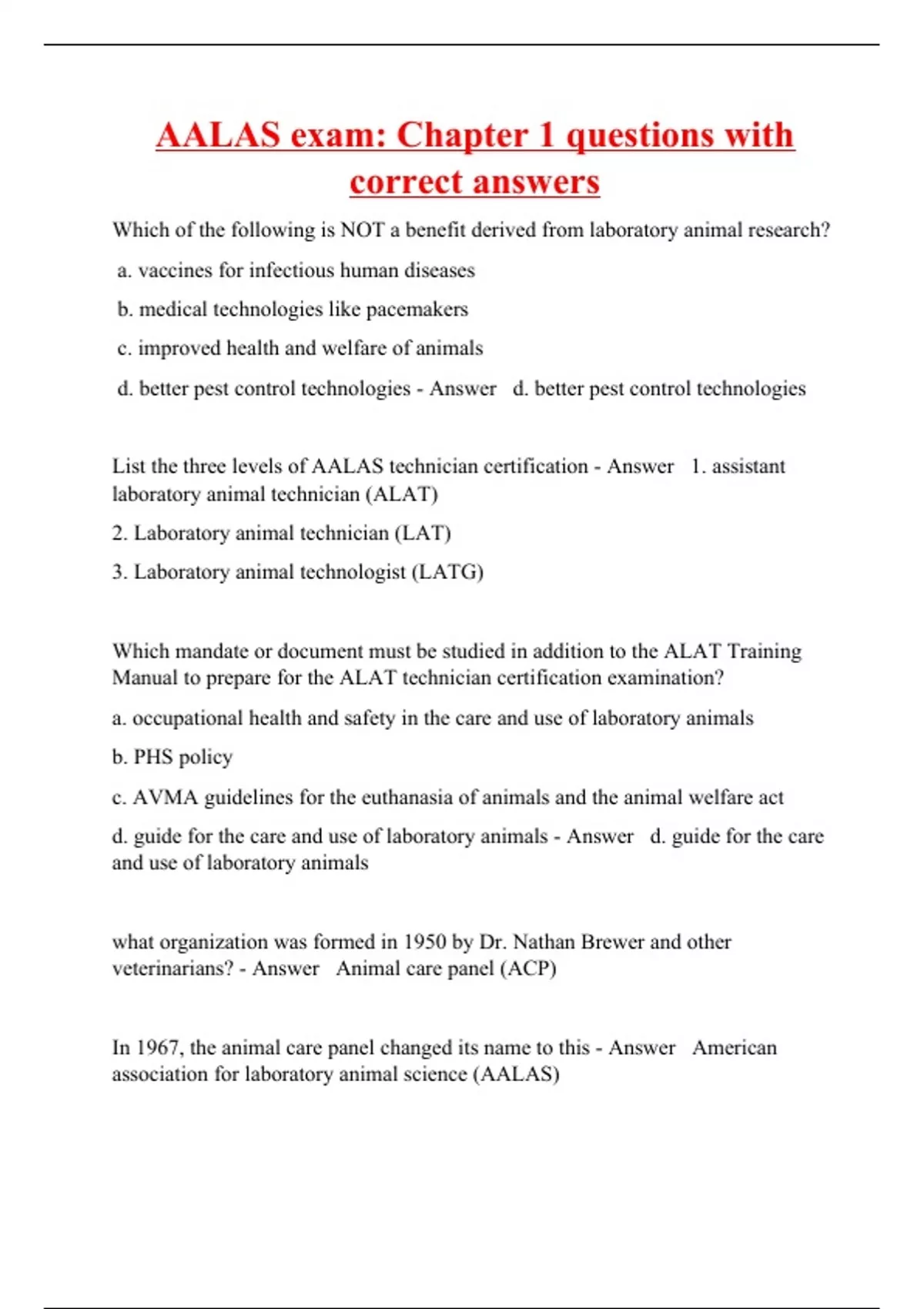 AALAS exam: Chapter 1 questions with correct answers