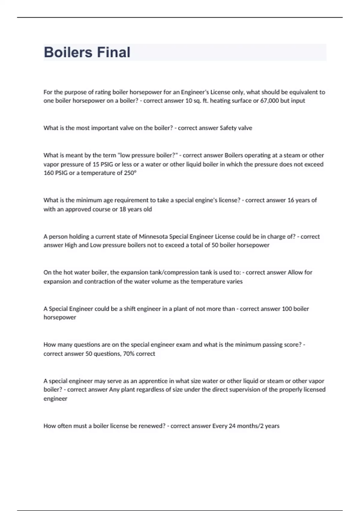 Boilers Final Question and answers already passed 2023/2024