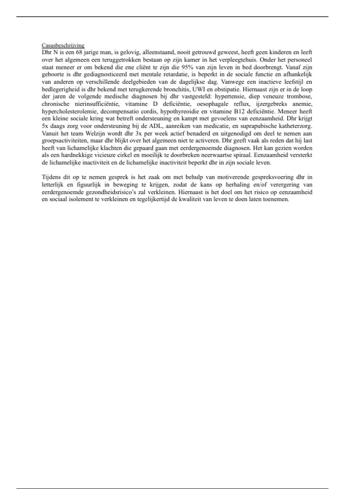 een korte casusbeschrijving is aangeleverd;