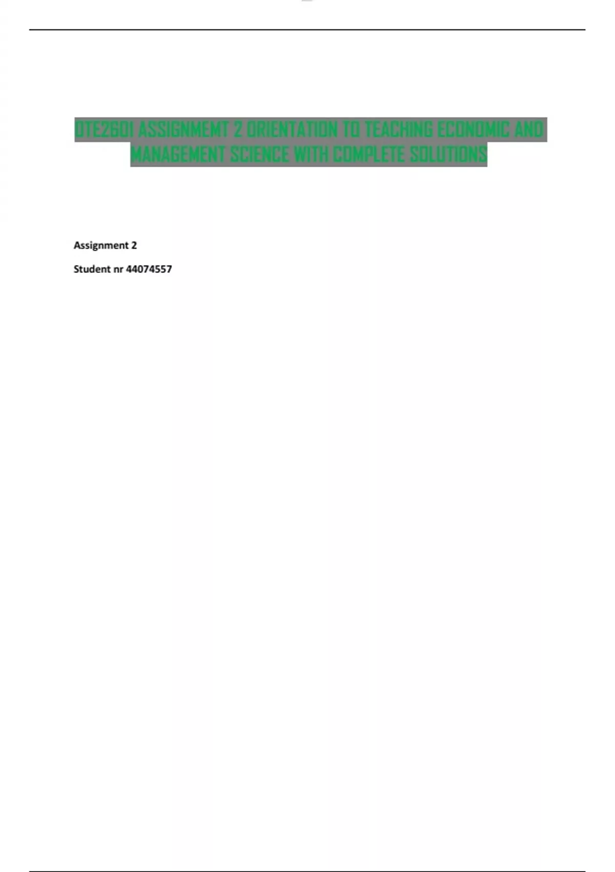OTE2601 ASSIGNMEMT 2 0RIENTATION TO TEACHING ECONOMIC AND