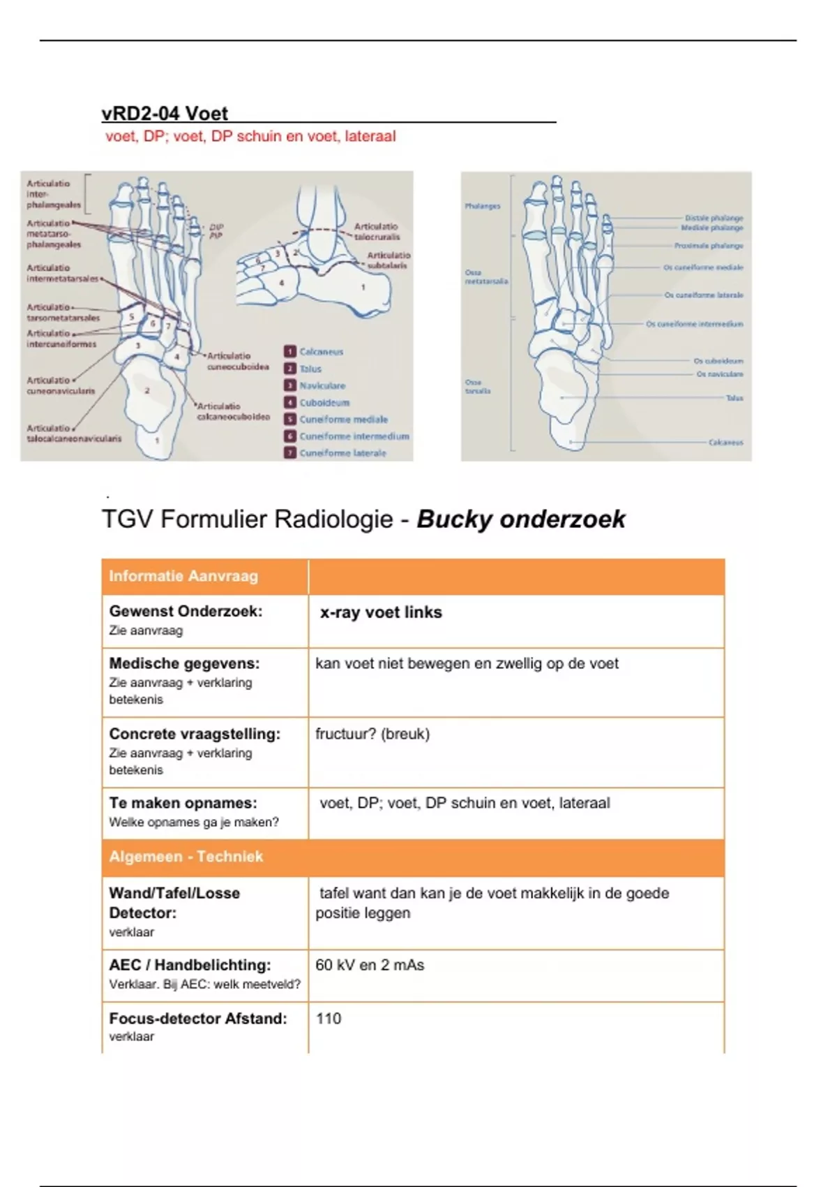 Samenvatting van 3 pagina's voor het vak Radiodiagnostiek aan de InHolland (TGV-formulier Voet)