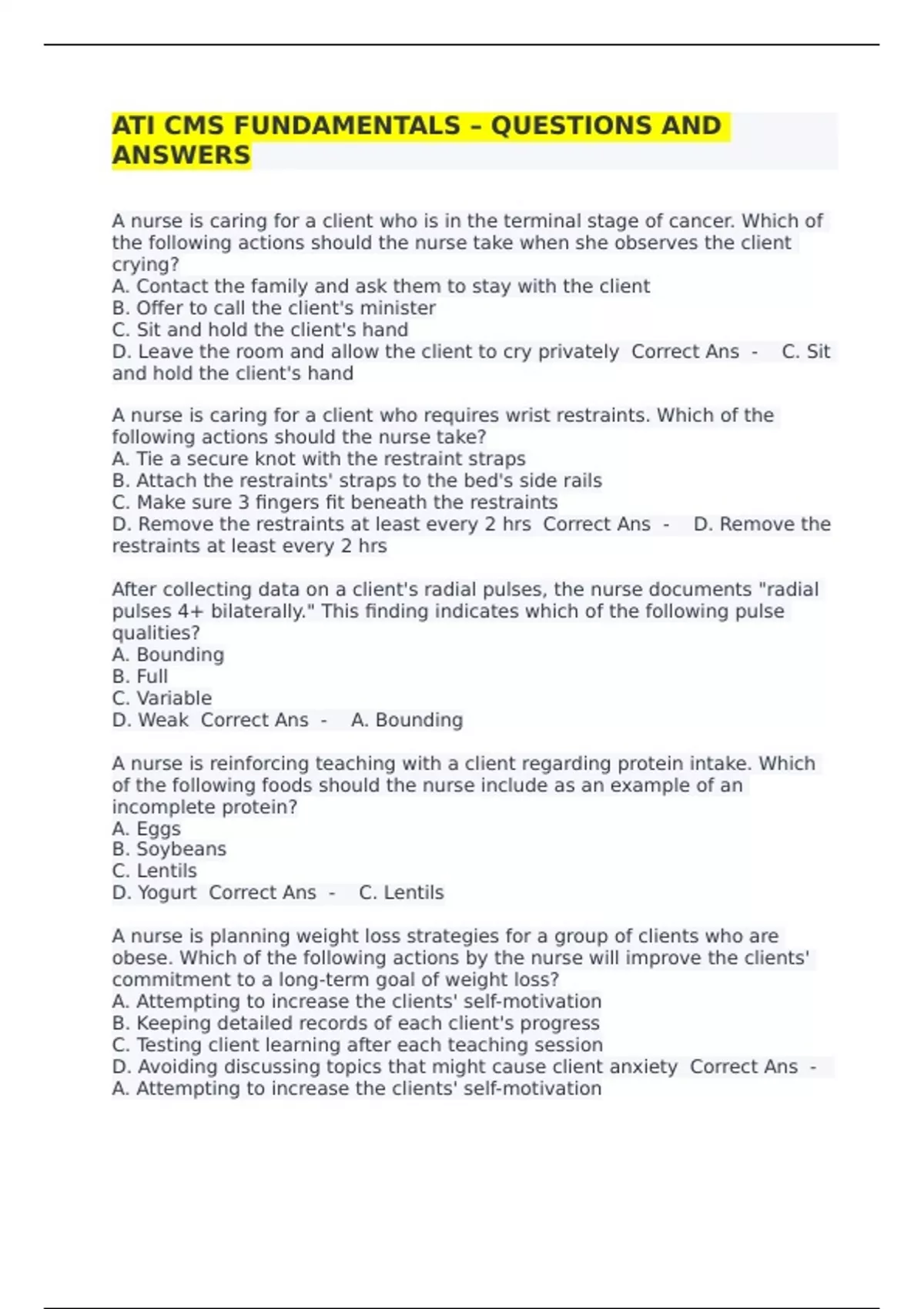 ATI CMS FUNDAMENTALS – QUESTIONS AND ANSWERS