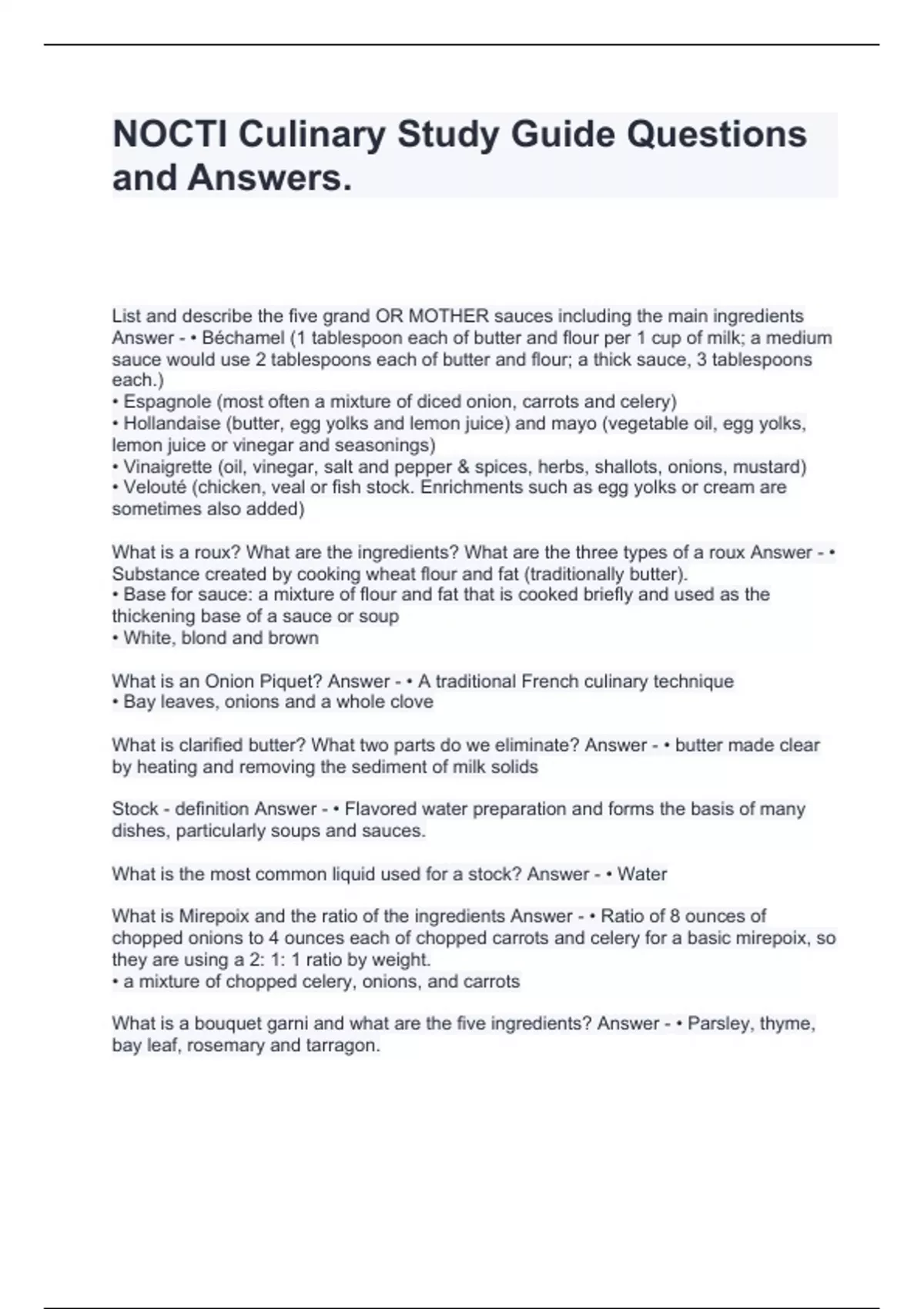 NOCTI Culinary Study Guide Questions and Answers