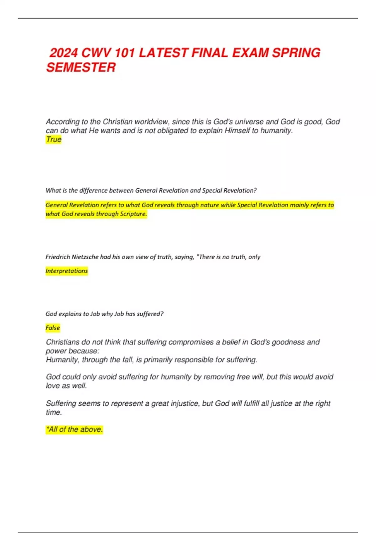 2024 CWV 101 LATEST FINAL EXAM SPRING SEMESTER