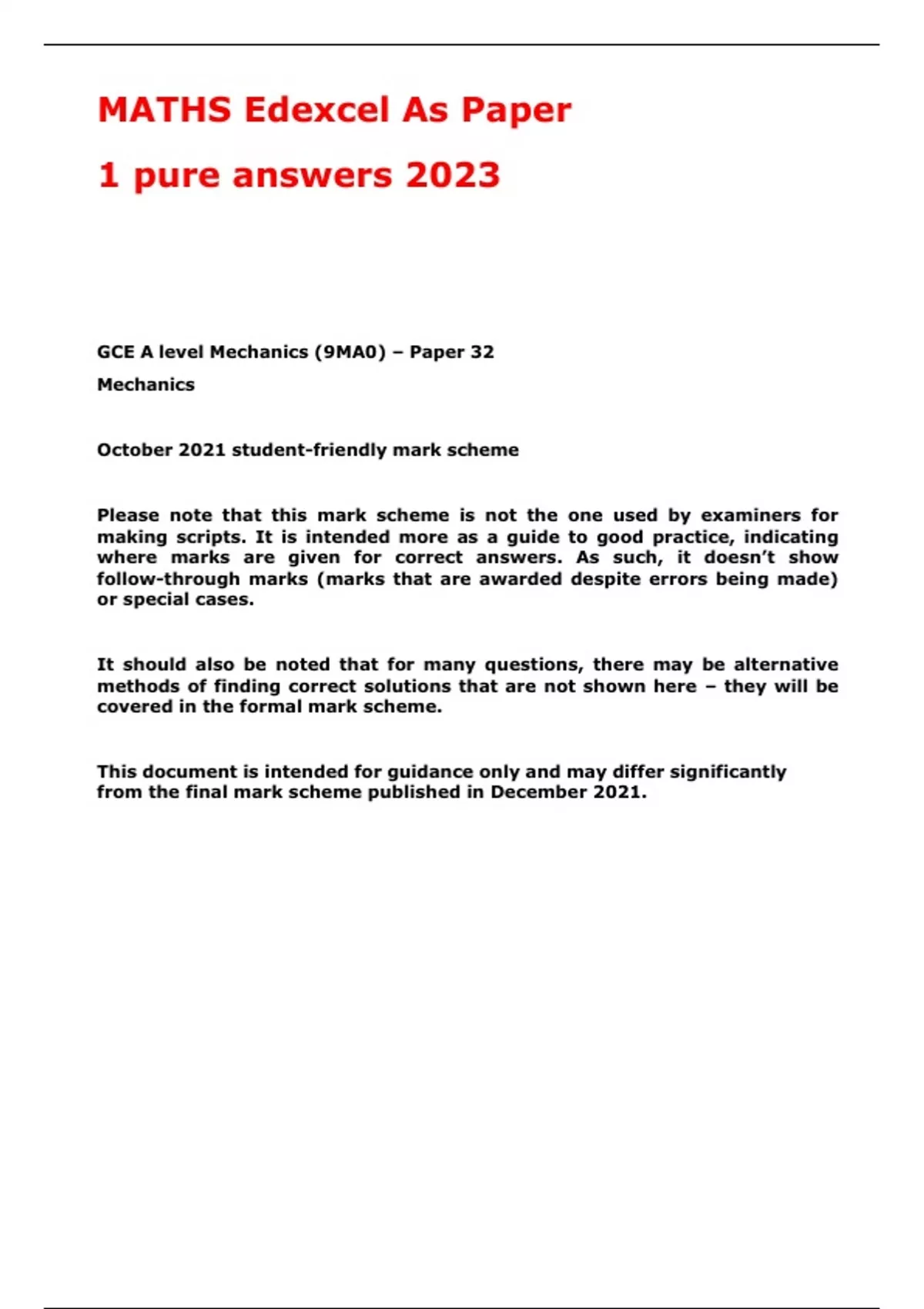 MATHS Edexcel As Paper 1 pure answers 2023