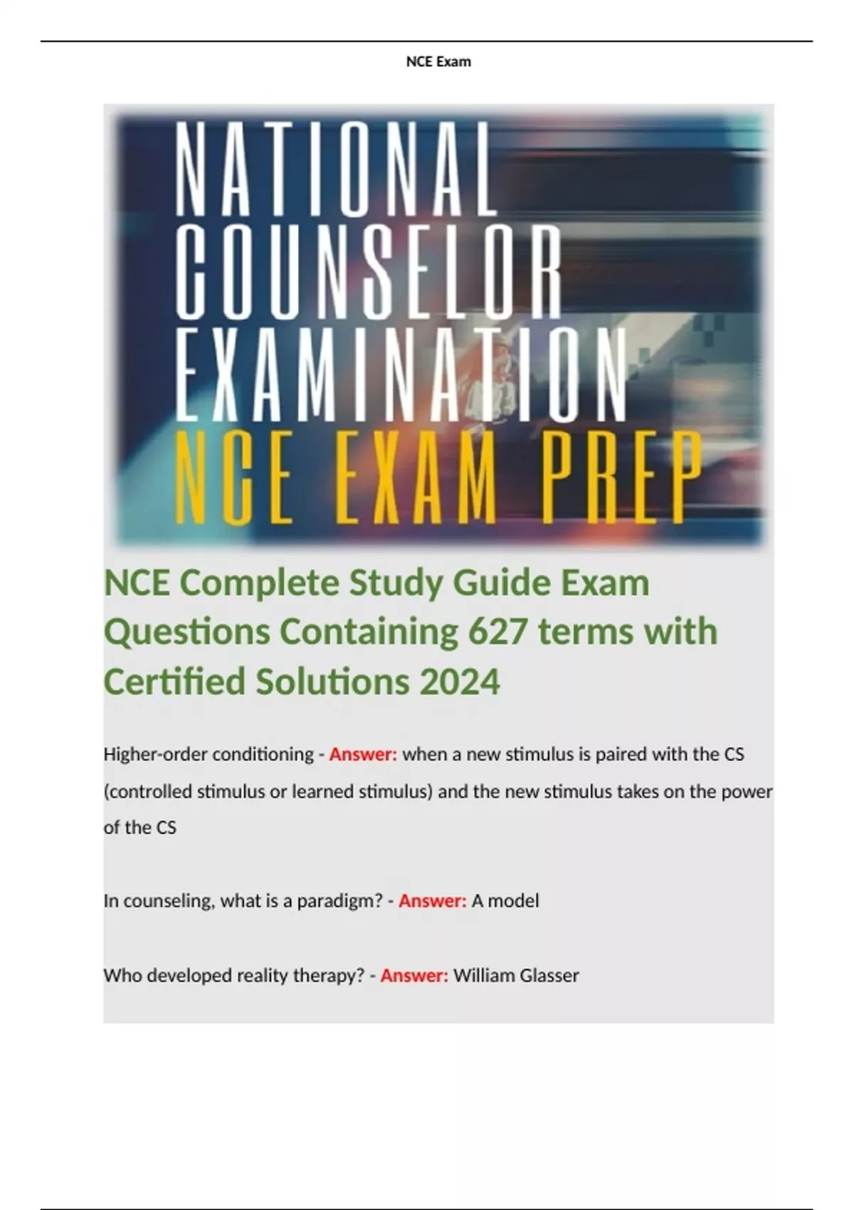 NCE Complete Study Guide Exam Questions Containing 627 terms with Certified Solutions 2024
