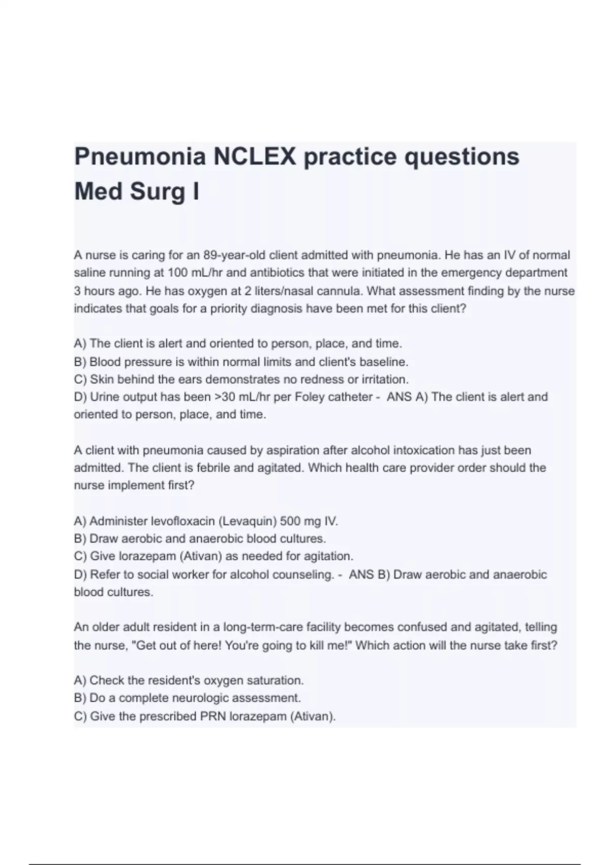 ATI MED SURG RN Pneumonia NCLEX practice Questions and Solutions Latest Set