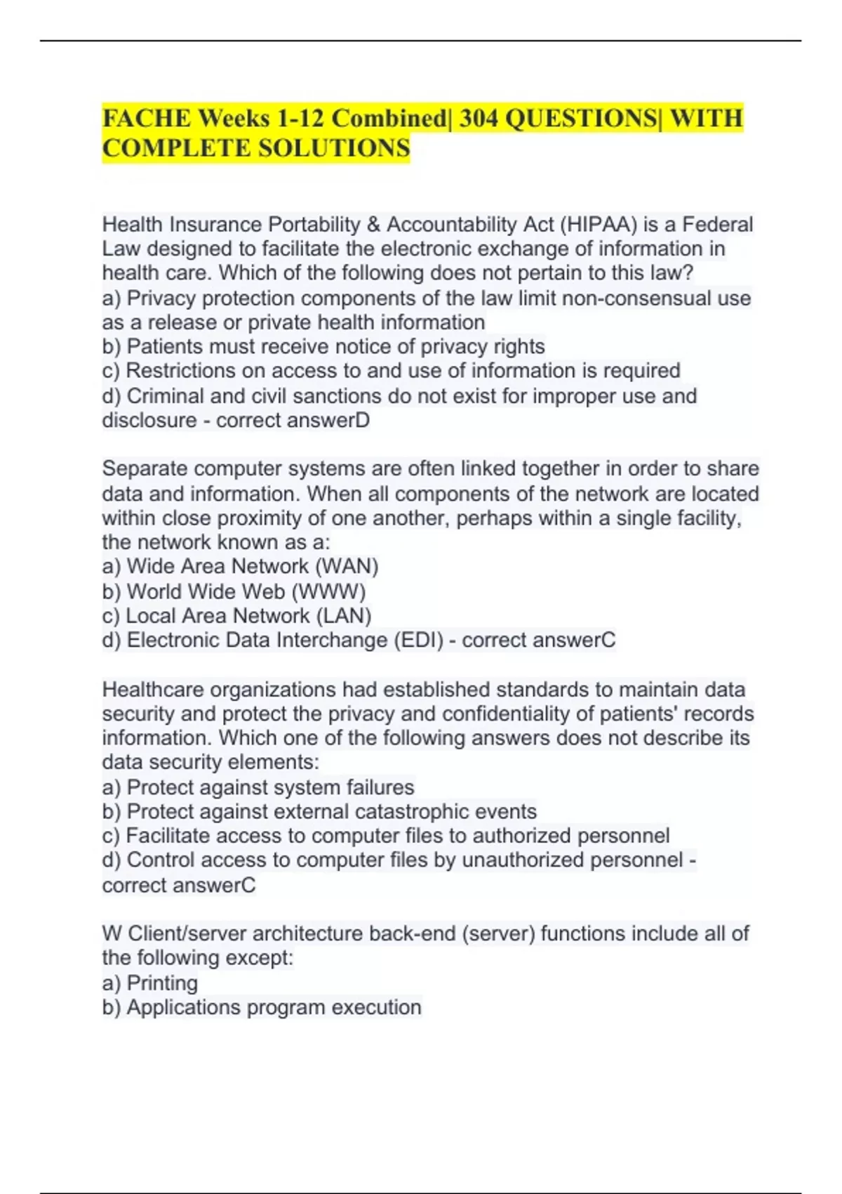 d) Use of HIPAA compliant software - correct answerC