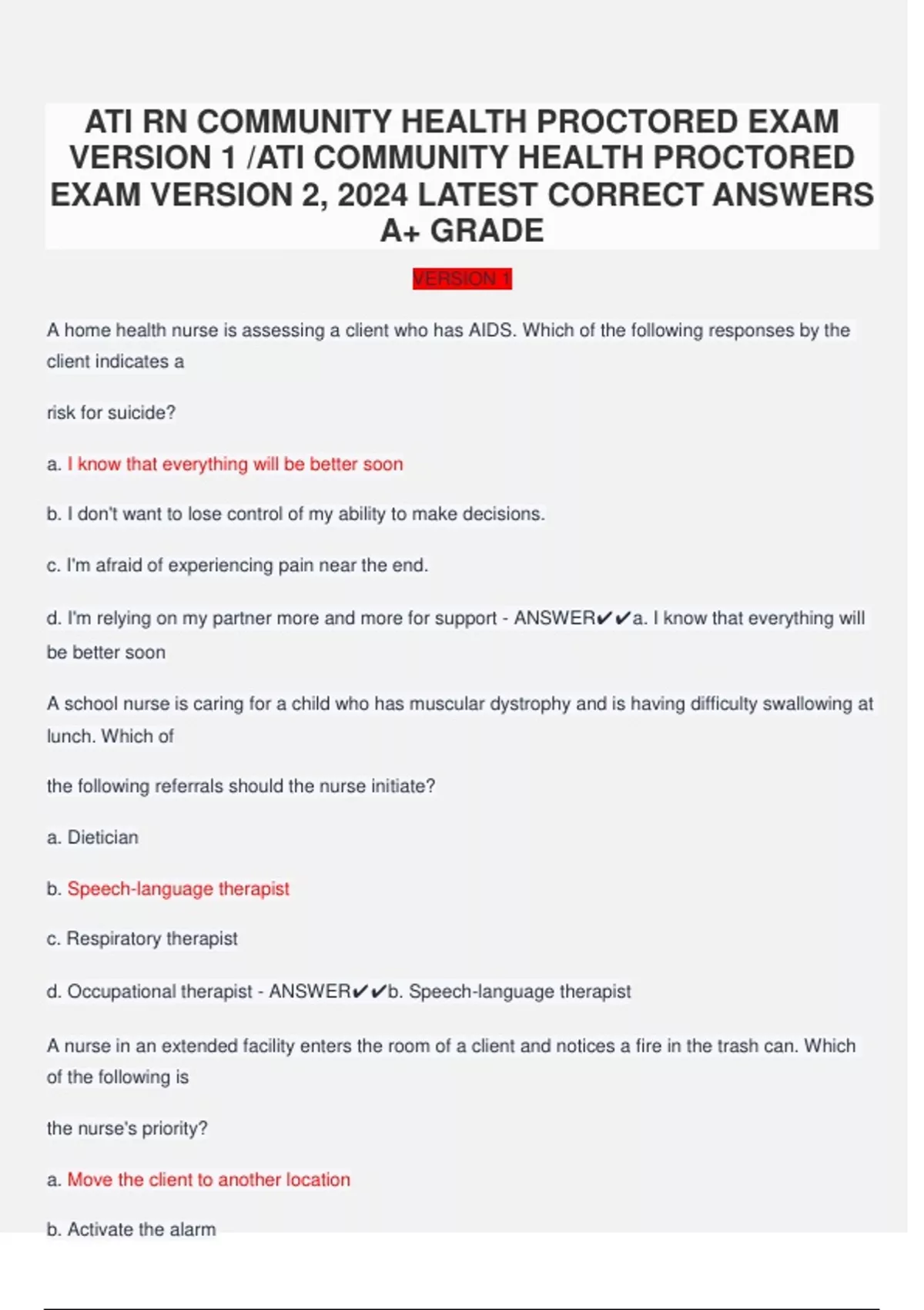 ATI RN COMMUNITY HEALTH PROCTORED EXAM VERSION 1 -ATI COMMUNITY HEALTH PROCTORED EXAM VERSION 2, 2024 LATEST CORRECT ANSWERS A+ GRADE