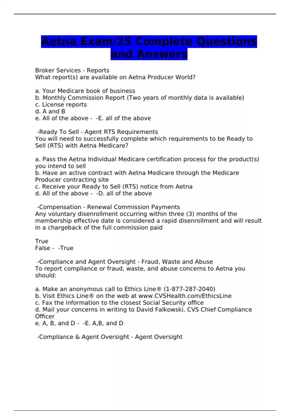 Aetna Exam/25 Complete Questions and Answers