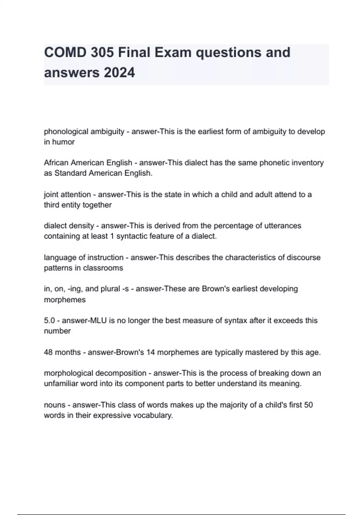 COMD 305 Final Exam questions and answers 2024