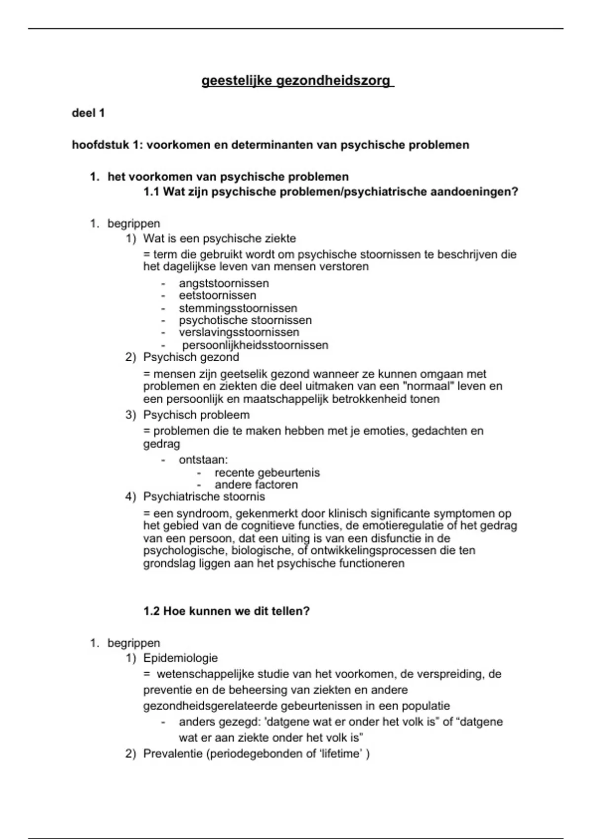 1. het voorkomen van psychische problemen