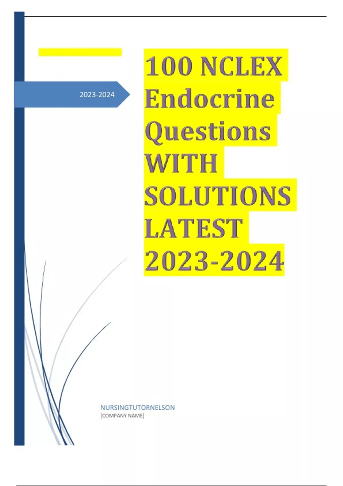 100 NCLEX Endocrine Questions WITH SOLUTIONS LATEST 2023- 2024