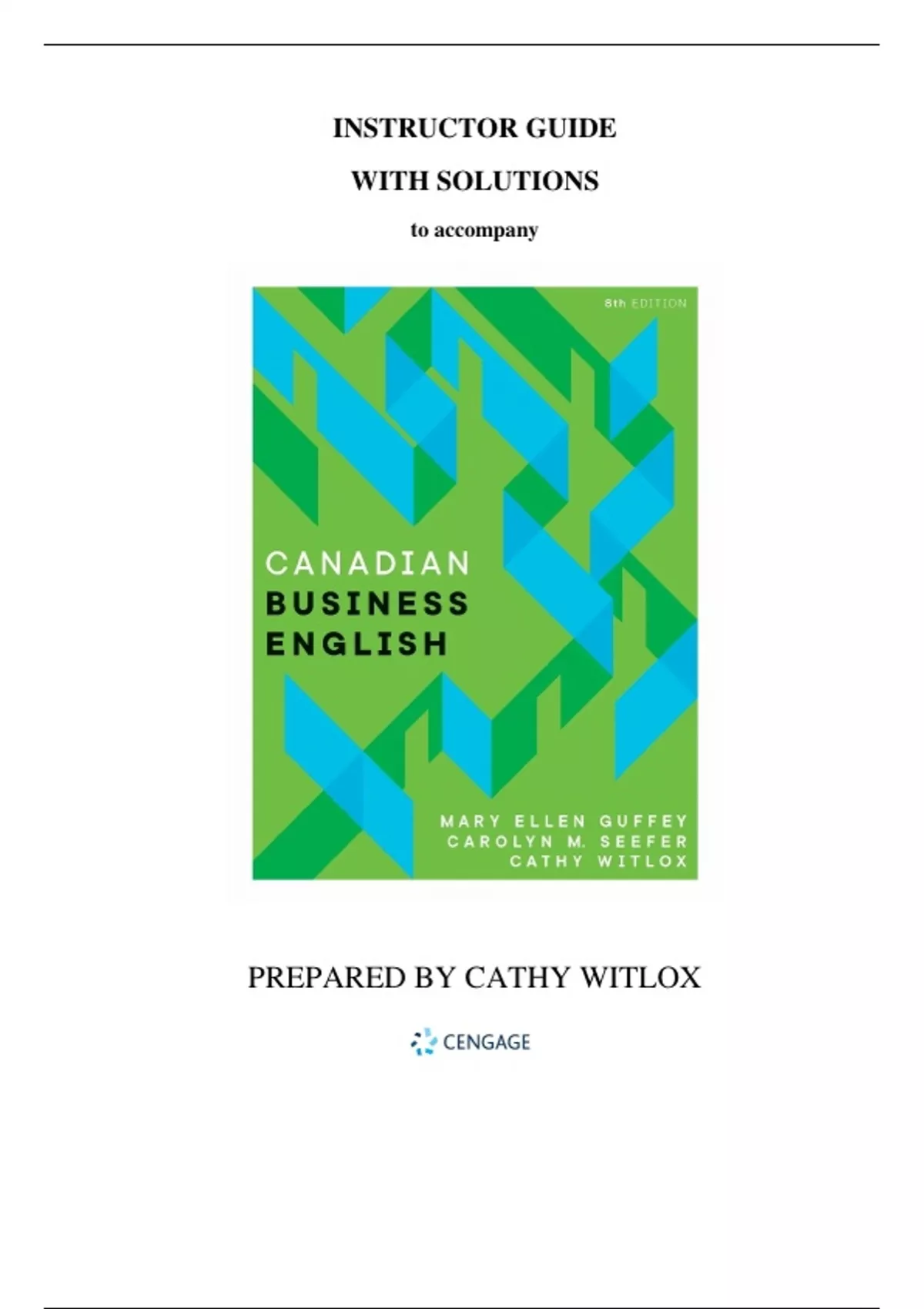 Instructor Manual For Canadian Business English, 8th Edition Mary Ellen GuffeyCarolyn M. SeeferCathy Witlox Chapter(1-21)